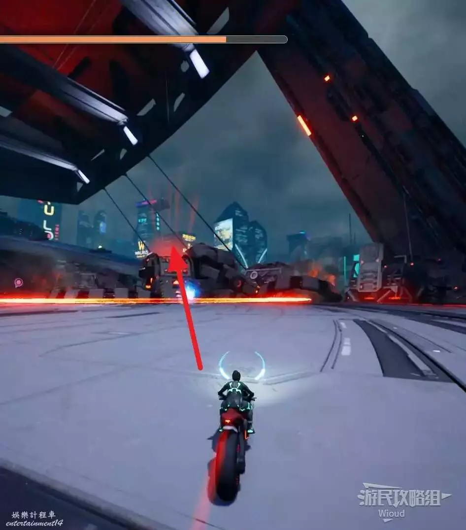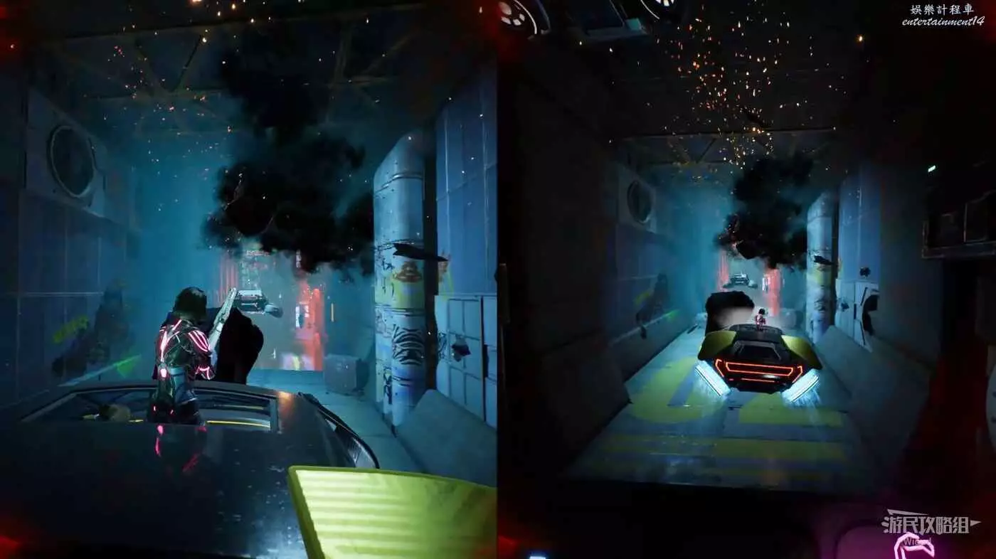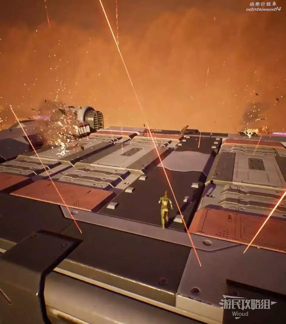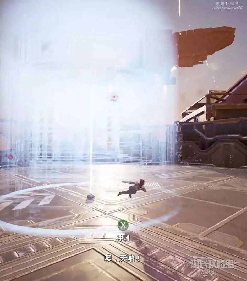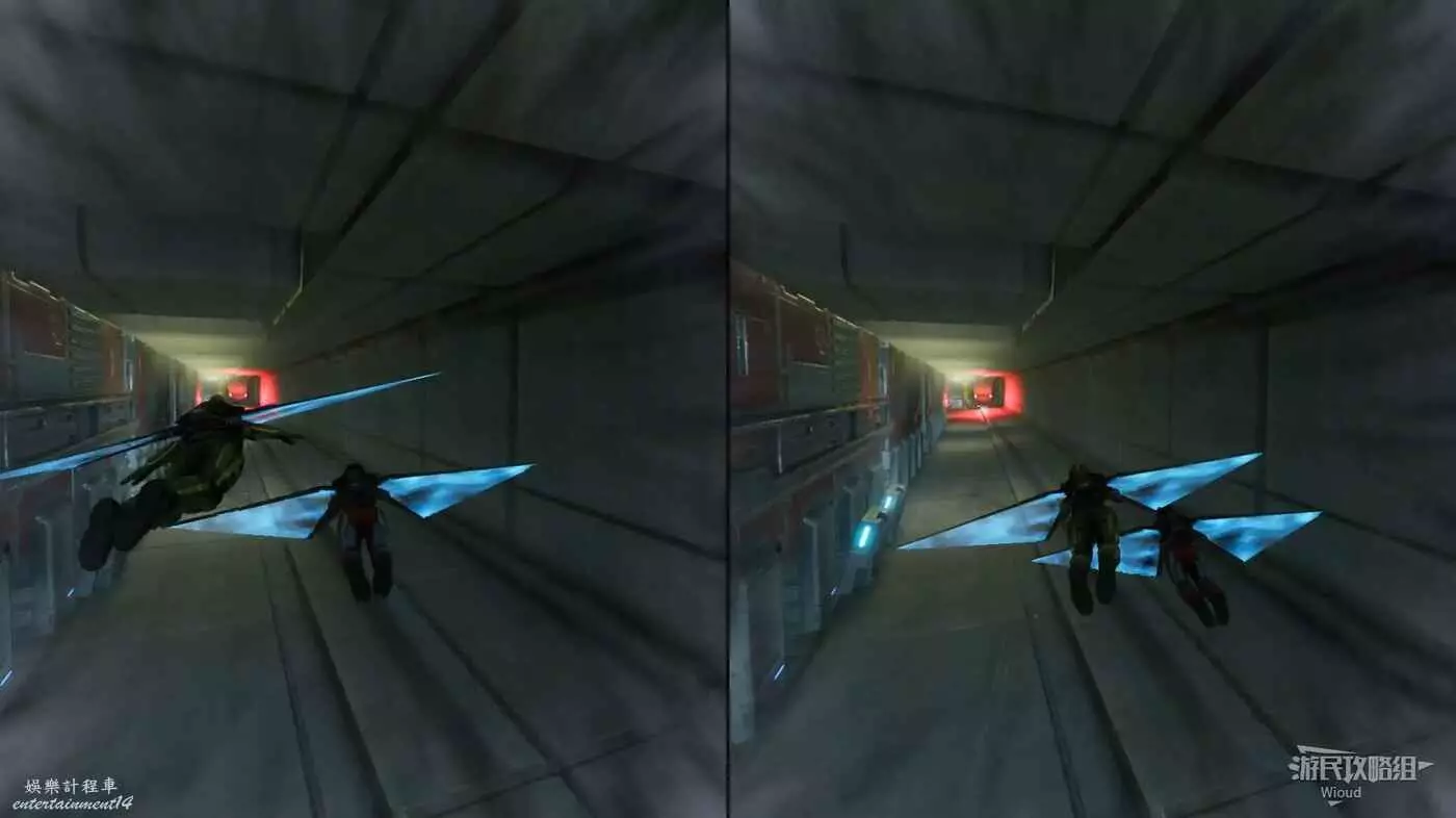 隨後合作打開關閉的大門,遇到一個飛船直接朝我們射擊,直接向飛船衝刺,當到達終點時通過飛船上的鉤爪點移動到飛船上。