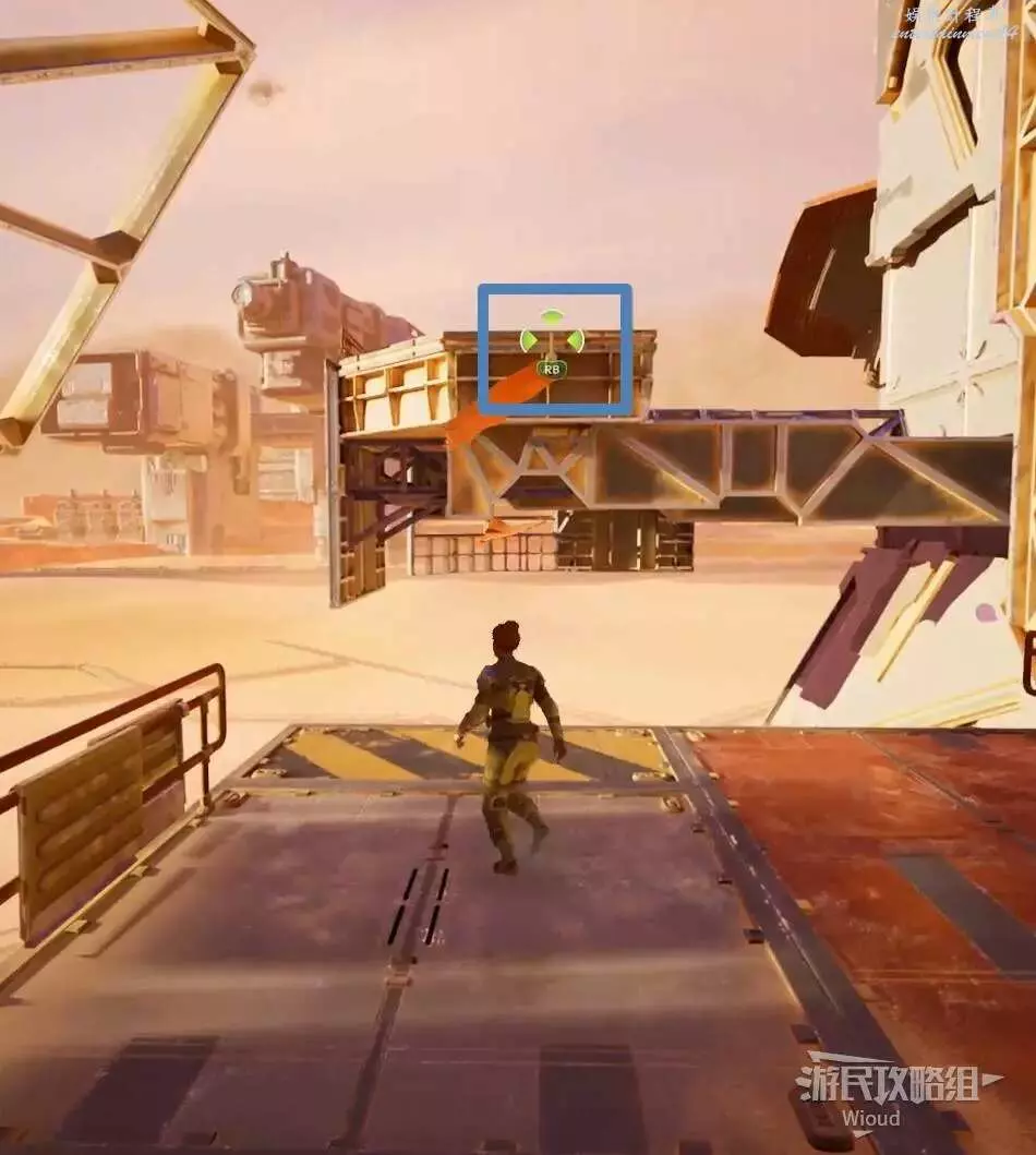 3號液壓機的位置往箭頭指向位置鉤爪點跳,通過兩個鉤爪點到達正對面的入口處。