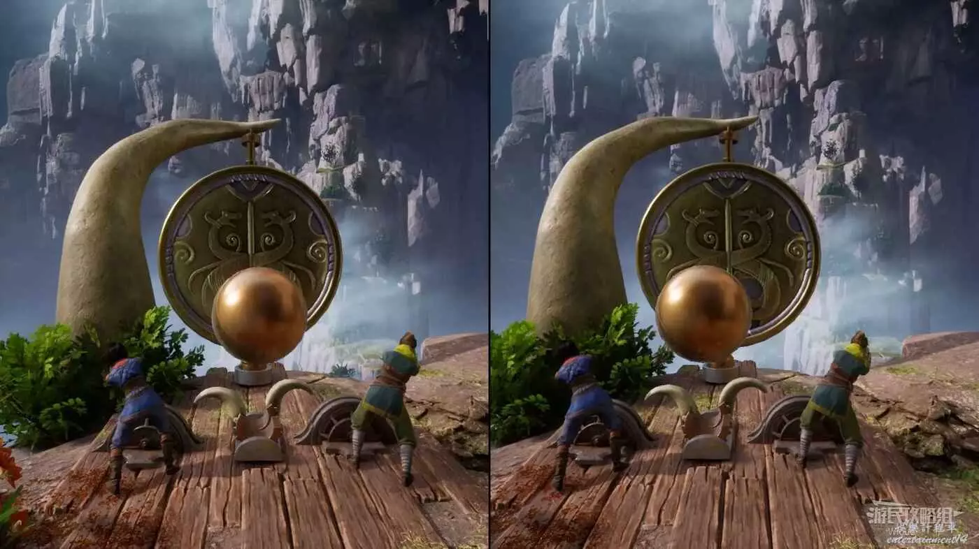 猩猩的作用則是將柱子砸到地面等待柱子緩緩升起,而解謎邏輯便是猩猩將柱子砸下去,再柱子緩緩升起的時候觀察柱子身後的面具樣式,如對應面具出現的時候樹人用樹枝纏繞住柱子防止移動。