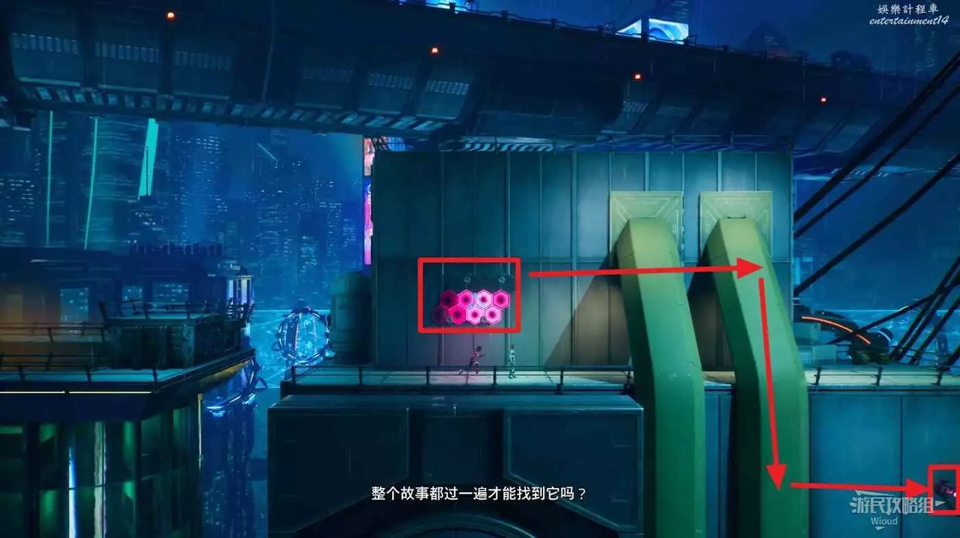 穿過玻璃跳到高台即可看到本章節最後一個支線的位置。