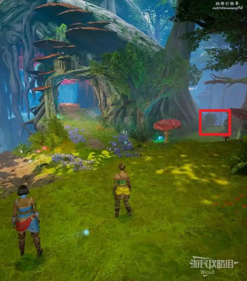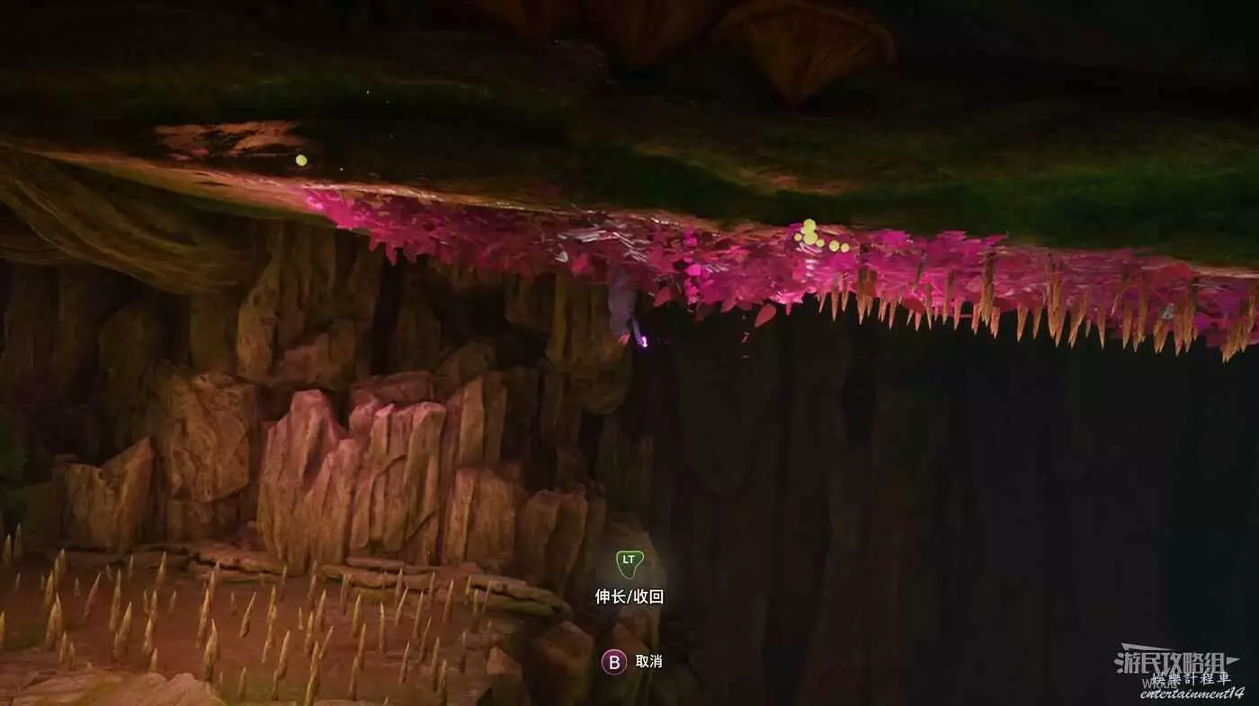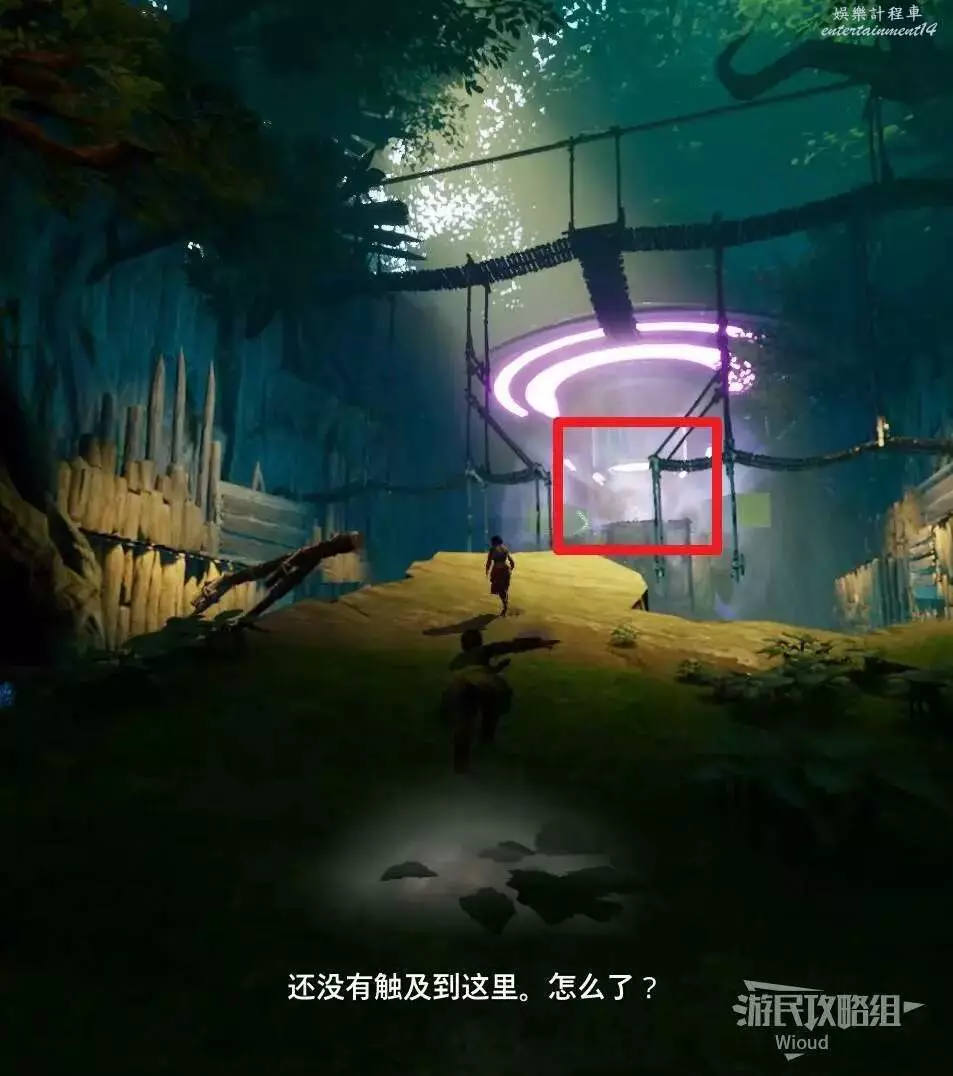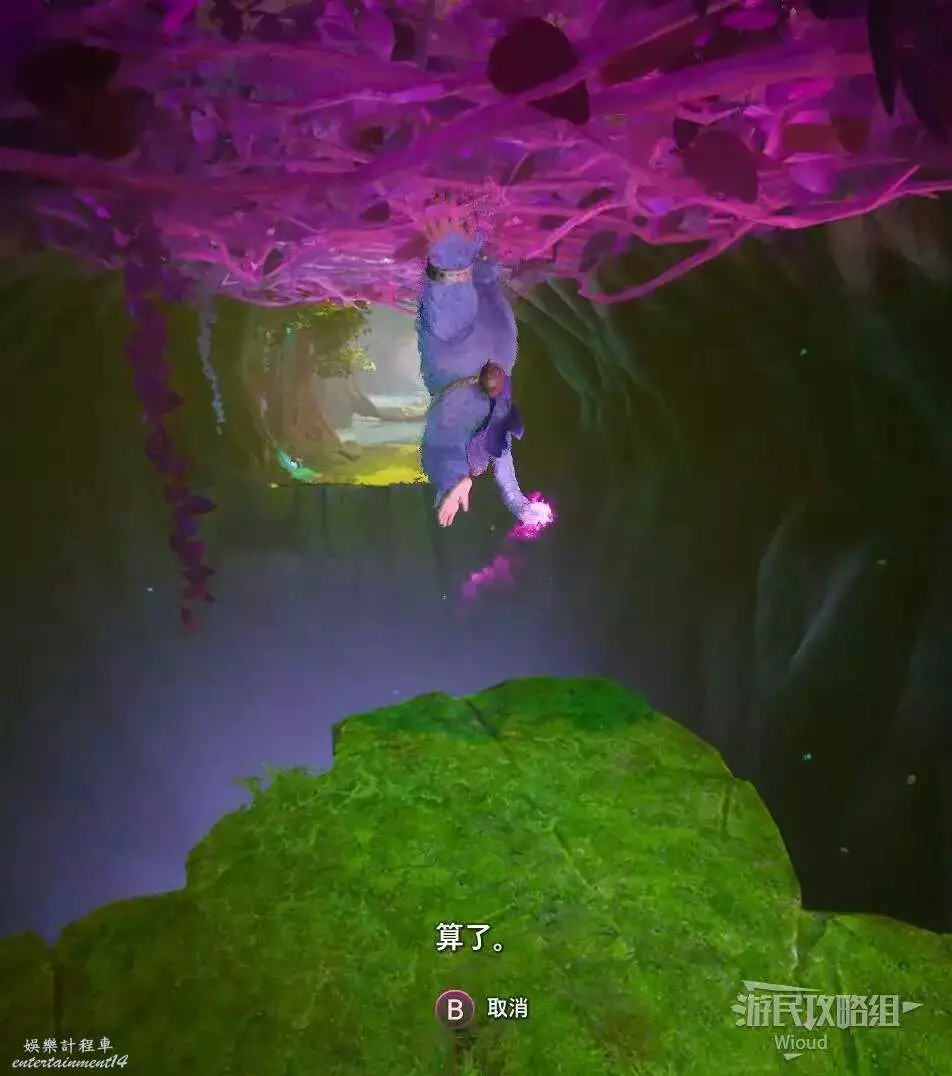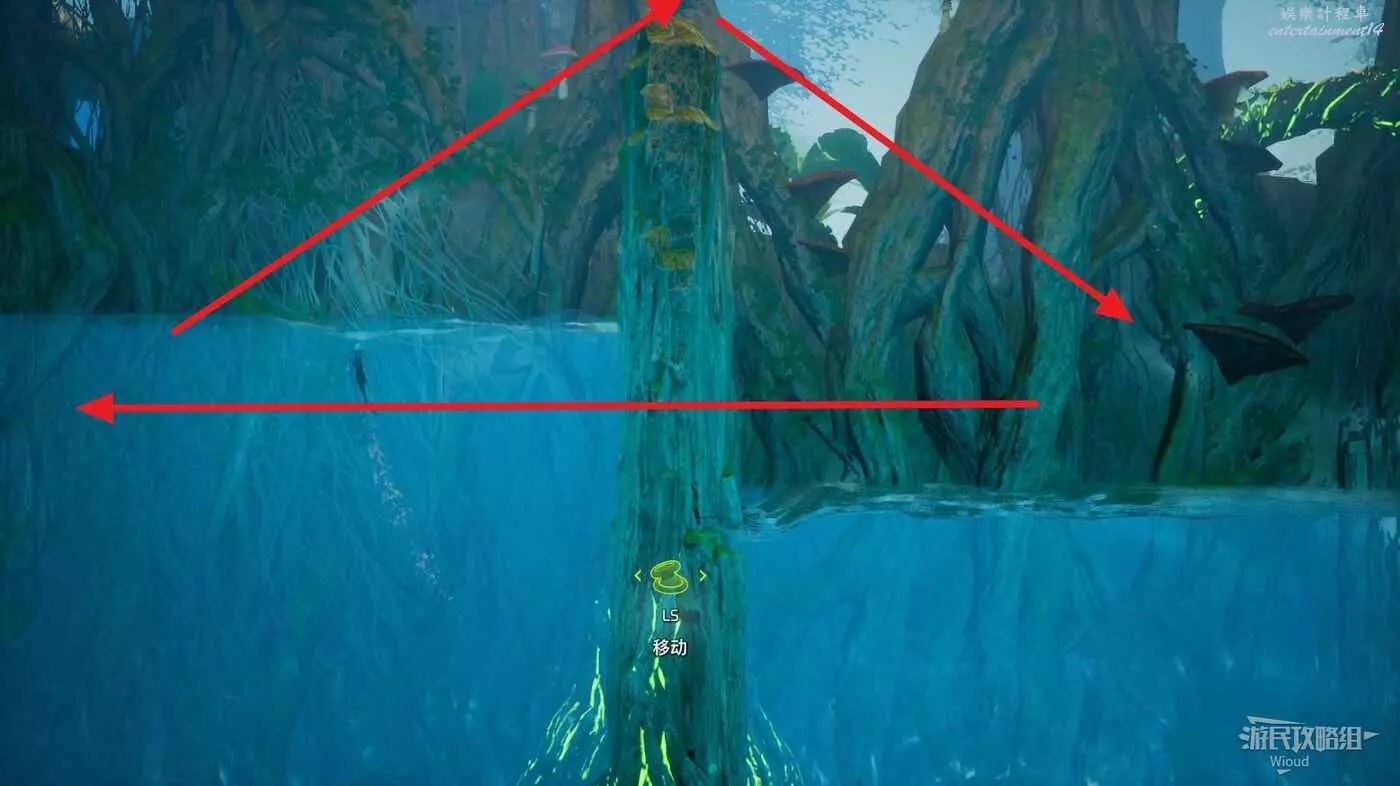 到達樹樁頂端後,跳到頂部藤蔓的位置,讓另一個玩家操控好陷阱,只是一收一放的操作。