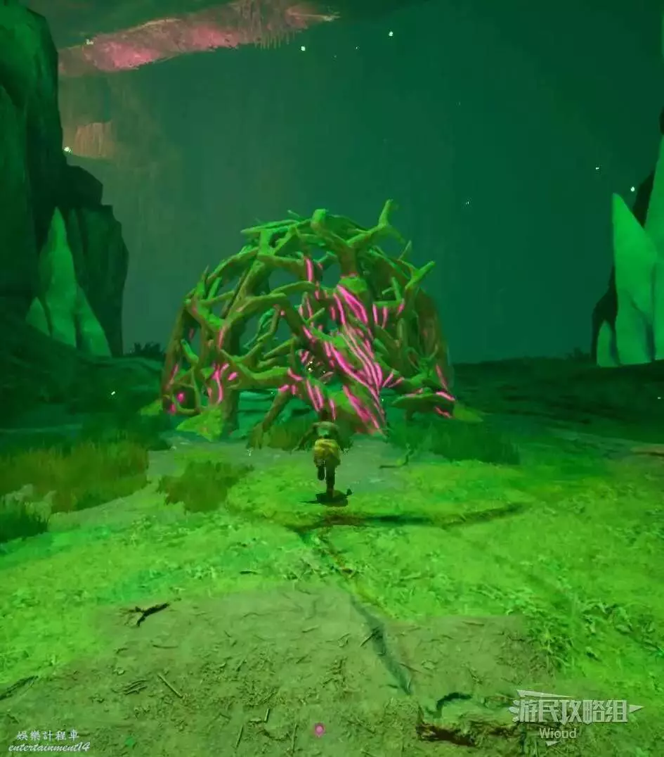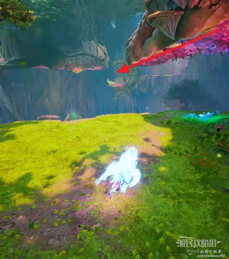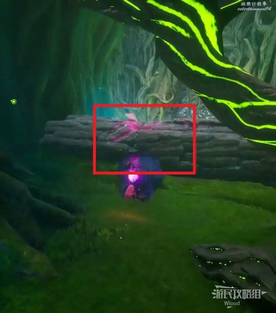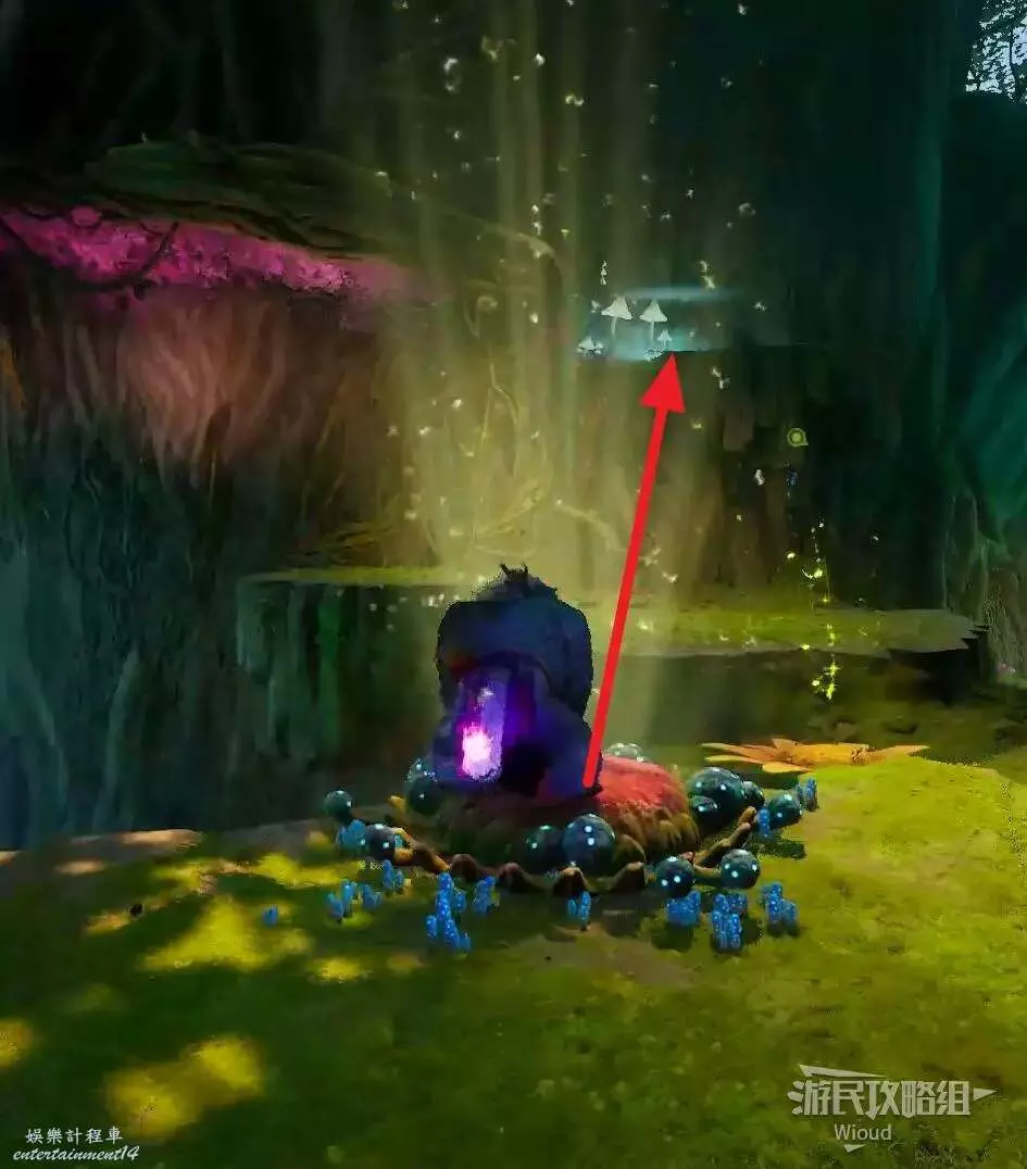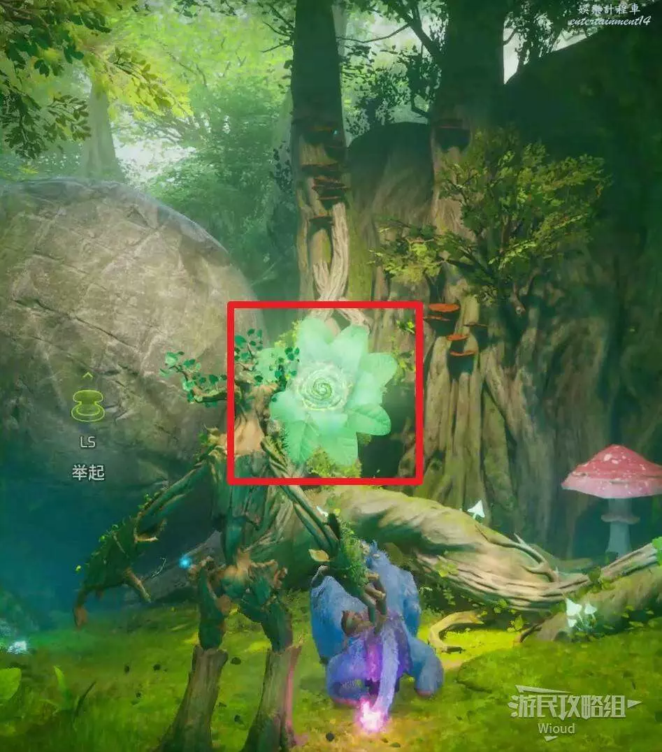 此處我們的目標是破壞右側擋住通道的樹枝,先去左邊綠花旁的鳥窩處搬起一個帶有翅膀的鳥蛋。