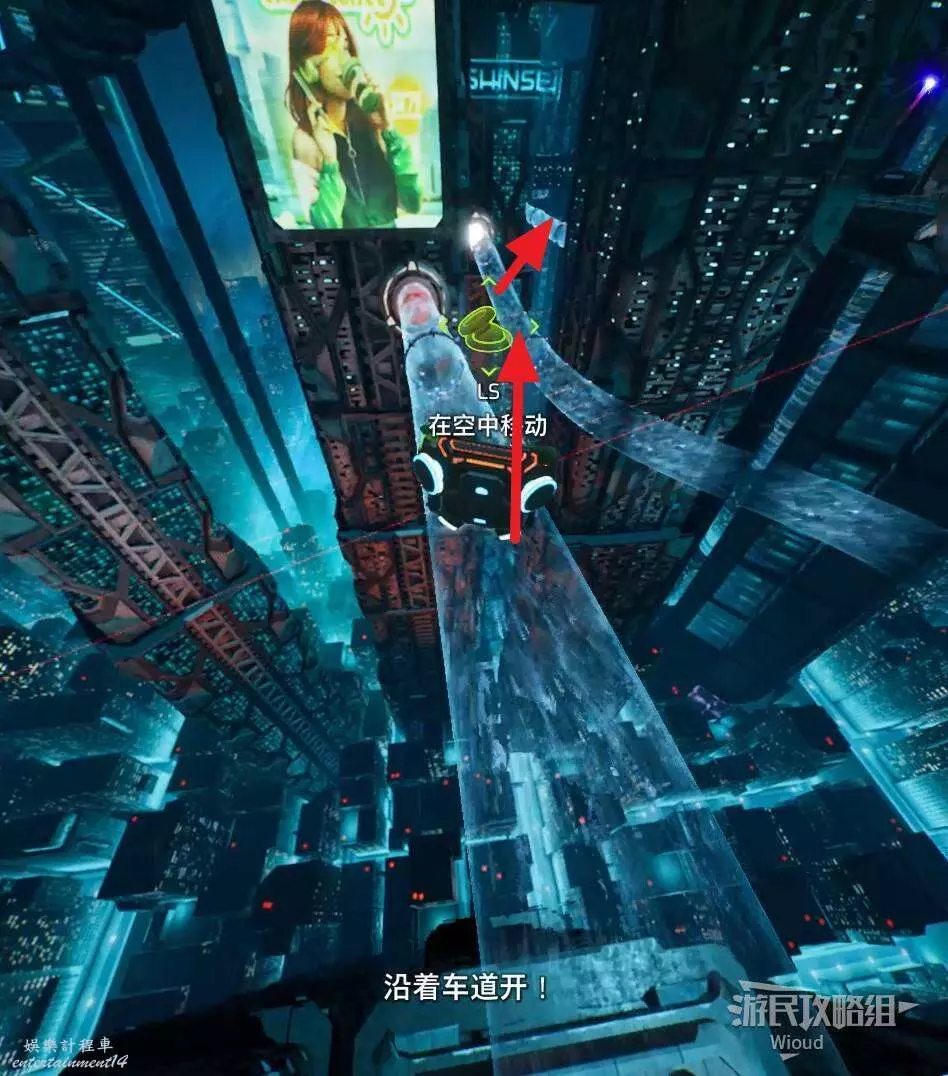 來到外側的高速通道,先通過鉤爪爬上第一輛車,然後通過鉤爪和跳車的方式不斷向前移動。