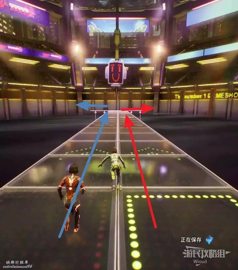 不遠處右側機械臂會帶來一個新牆,先跳到右牆跑到頭跳到左牆重複動作。