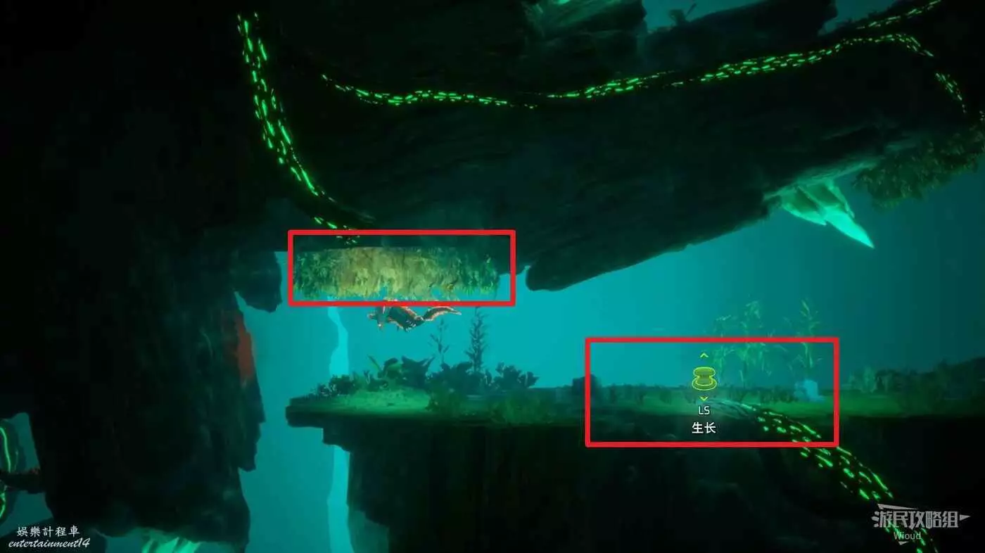 到右邊部分,從操作板子變成了伸縮雜草,魚躲在雜草裡即可躲過食人魚的追蹤。