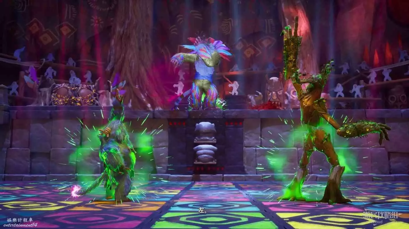 當右側玩家扔出水果吸引巨魔注意力後,左邊玩家趁機移動到對面的障礙物,然後反轉一下,左邊玩家扔水果,右邊玩家移動即可。