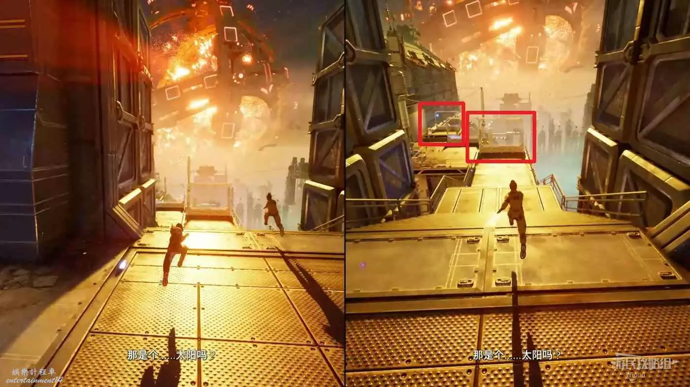 先沿路走來到外面,發現一個不斷爆炸的星球,每次爆炸都會將沒有靠近遮擋物的玩家直接消滅。