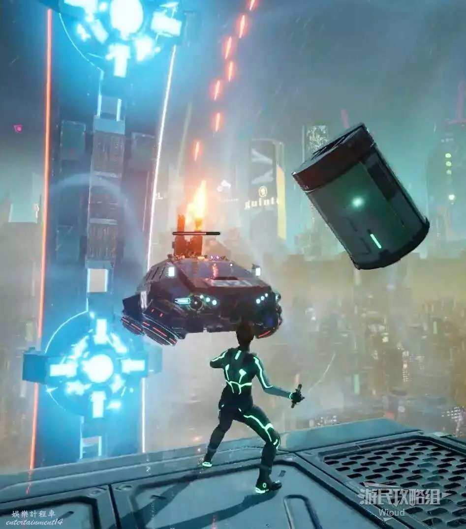 通過跳躍不斷移動的齒輪到達盡頭,攻擊大門進入駕駛室,通過左側樓梯移動到車頂。