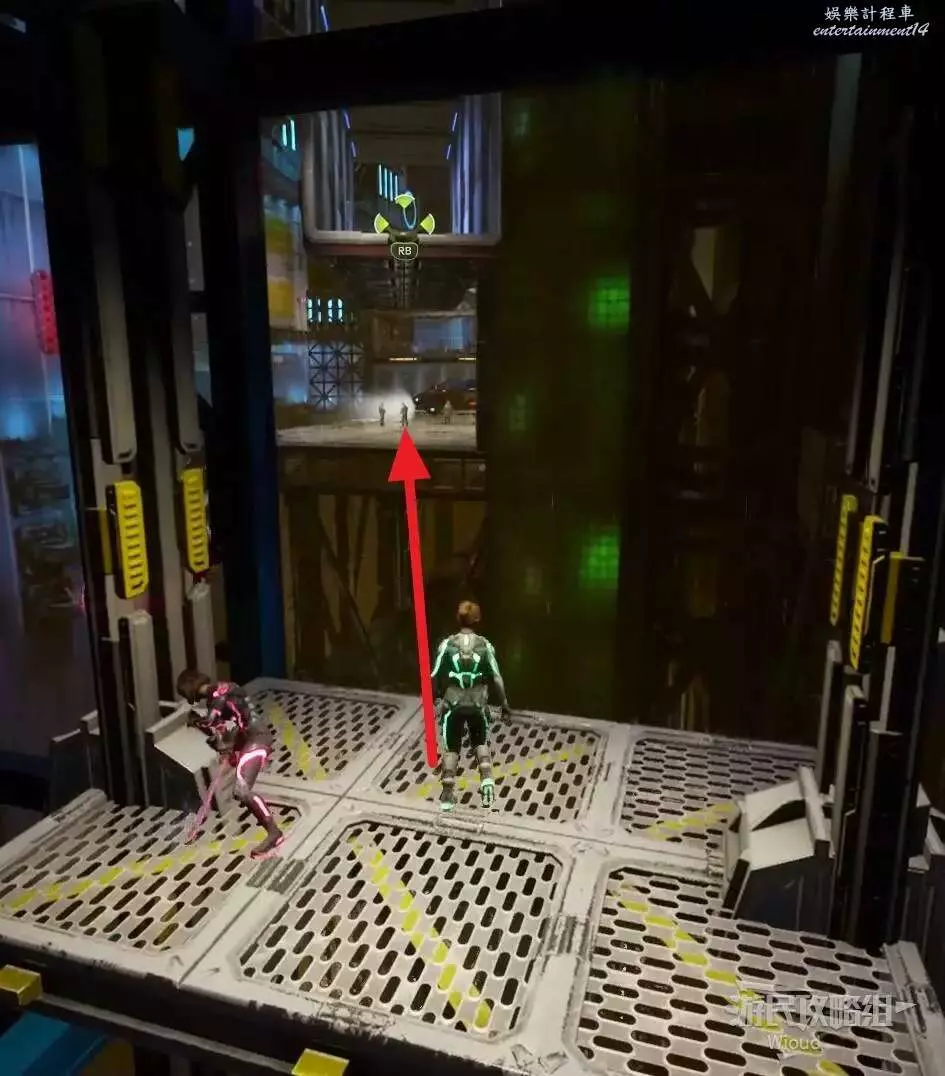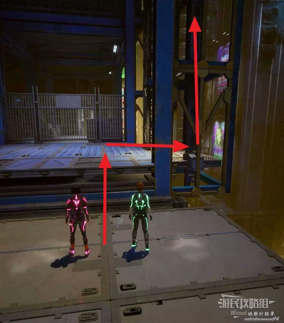完成支線後乘坐平台右側的電梯上去,再通過鉤爪移動到對面平台。