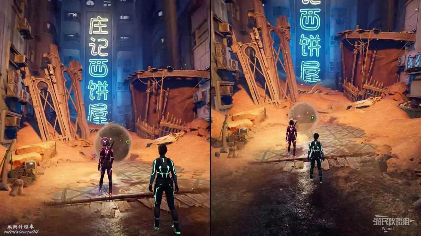 從霓虹街道的關卡起始點走過一段樓梯,爬過前面的柵欄即可到達霓虹復仇第二個支線任務的入口。