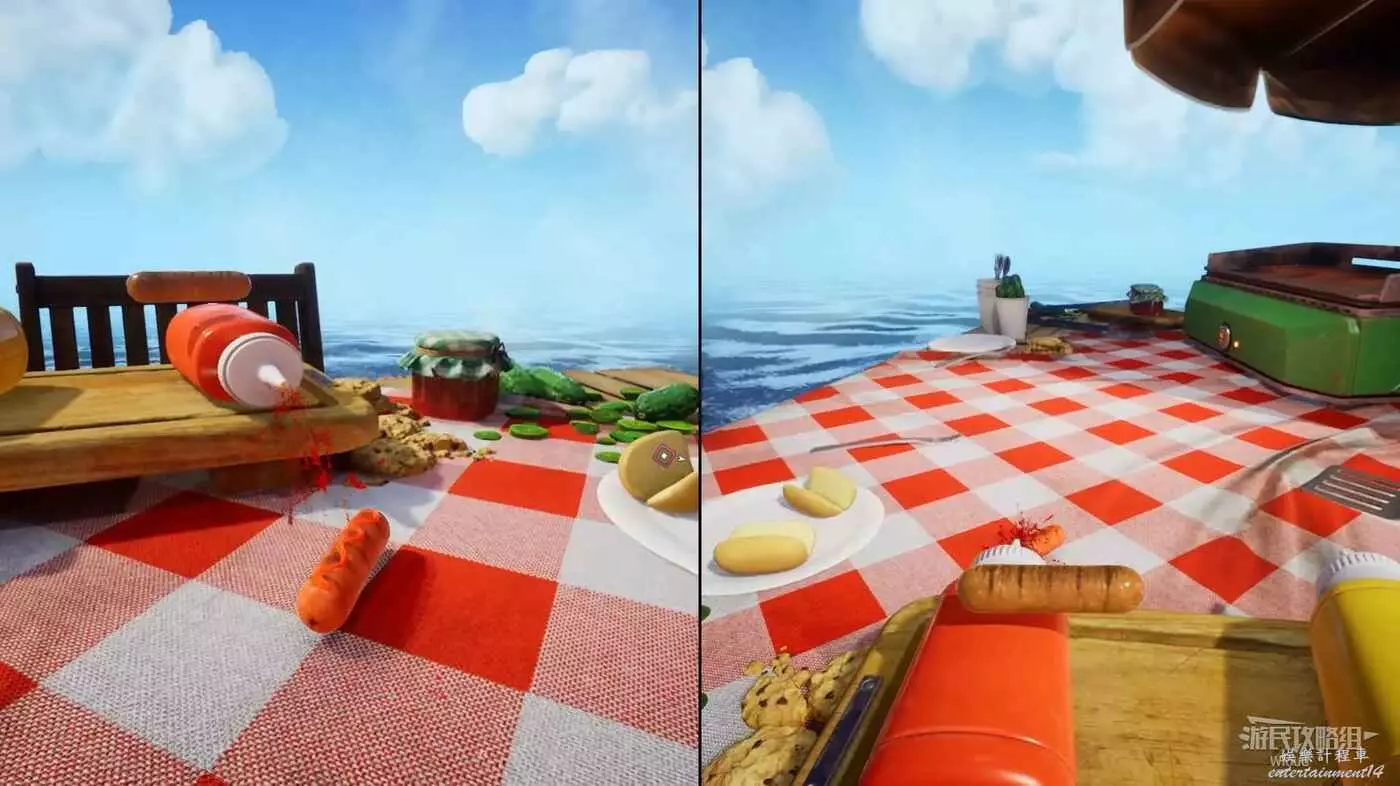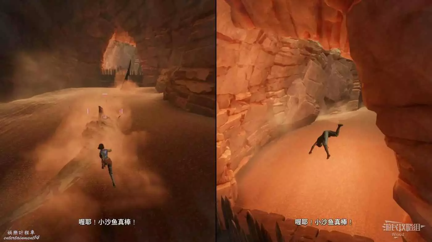 與柱子互動並按下指定按鍵,可以讓柱子下沉並吸引“沙魚”的注意力,然後另一個玩家要做的就是趁沙魚離開的時候立刻跑動下一個柱子旁,然後二人交叉移動都終點。