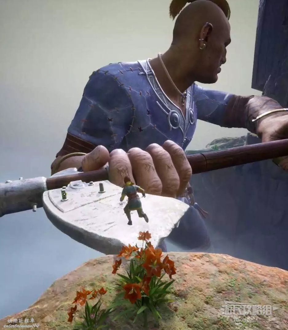 沿路走到頭,雙人一塊擺動機關召喚巨人,然後跳到巨人的手上讓巨人移動我們,再通過鉤爪在不同巨人之間移動。