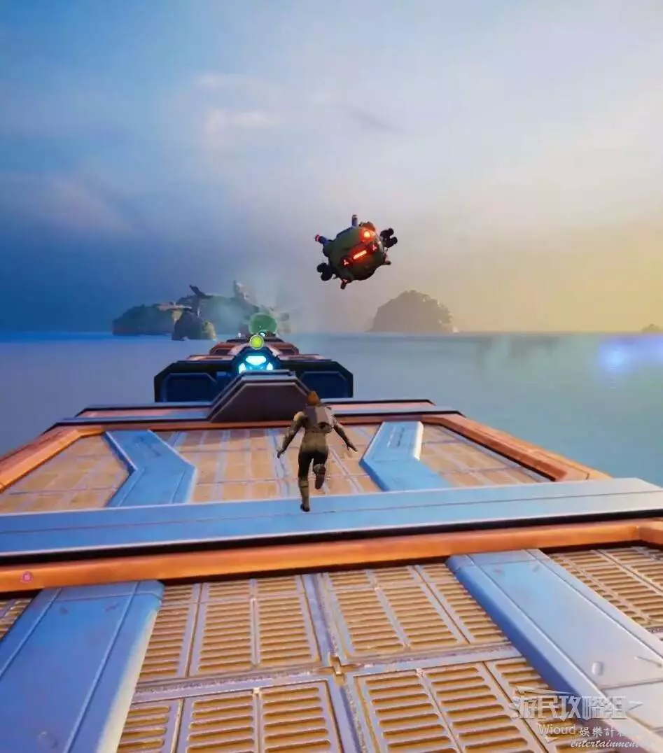 直接跳到下面沙魚的位置使用鉤爪鎖住,然後駕駛沙魚躲過諸多障礙物到達終點,完成任務。