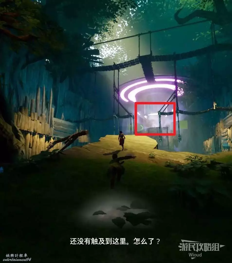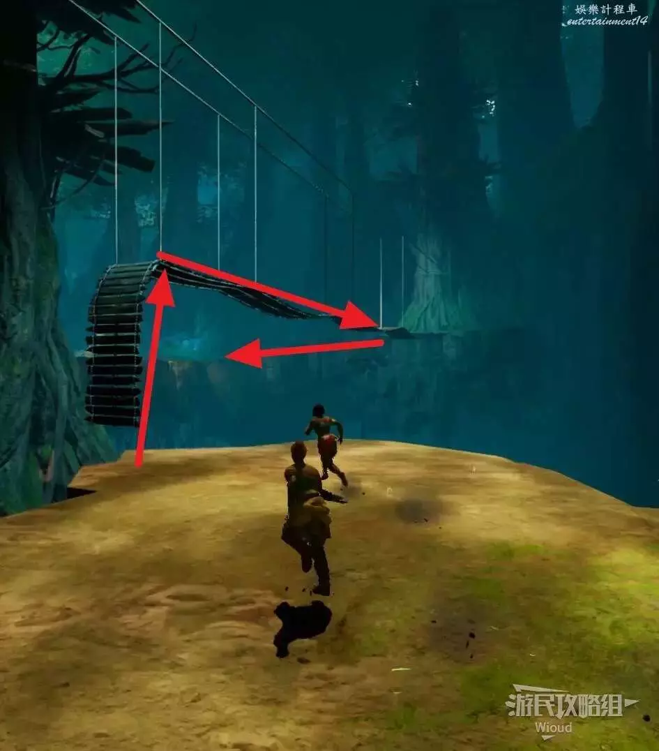 繼續通過數個鉤爪點移動,直到看到一個木柱子,爬到木柱子頂端,跳到右側高處,爬一段樓梯再合作開一扇門進入任務二階段。