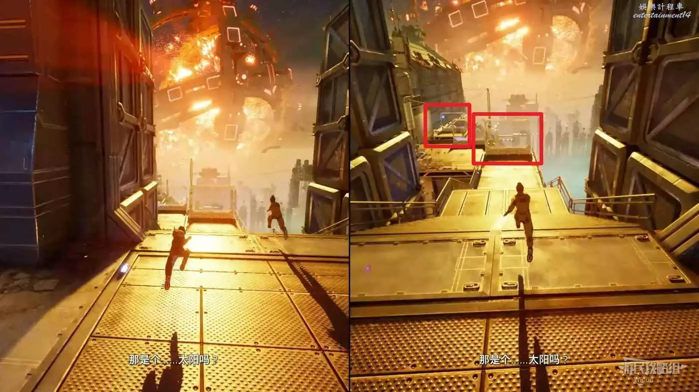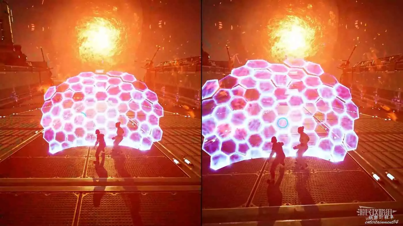 先沿路走來到外面,發現一個不斷爆炸的星球,每次爆炸都會將沒有靠近遮擋物的玩家直接消滅。