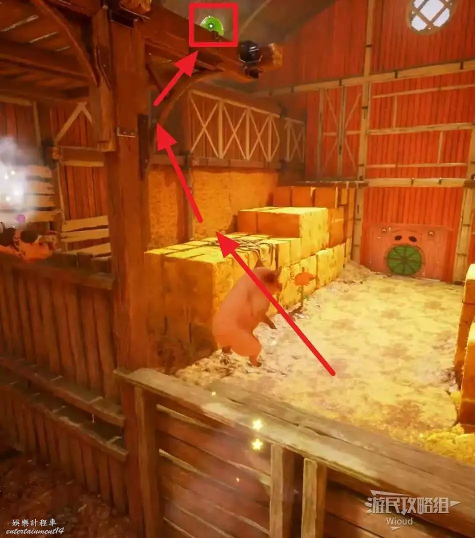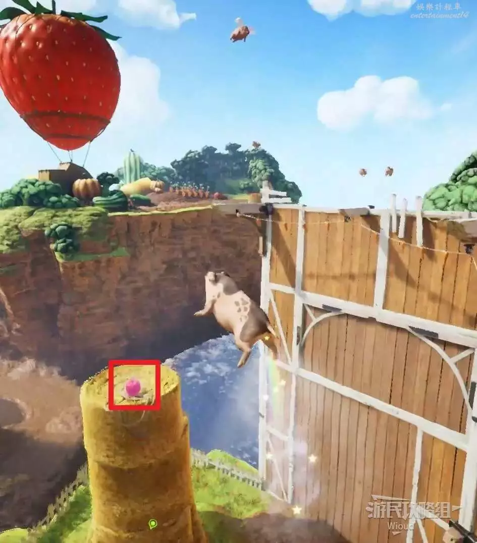 最後一張地圖,沿路走到斷崖處,通過旋轉靠近的籃子跳到對面平台,倆隻豬一塊進入平台左側的框裡觸發劇情。