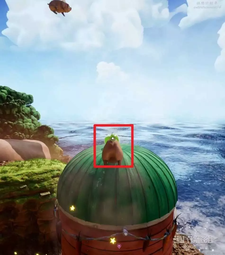 而綠色寶珠就在大豬頭右側綠色高台處。