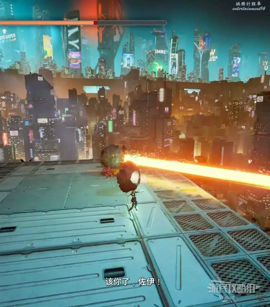 劇情結束後,畫面轉成橫版,還會有一個鐵球噴射鐳射攻擊我們。