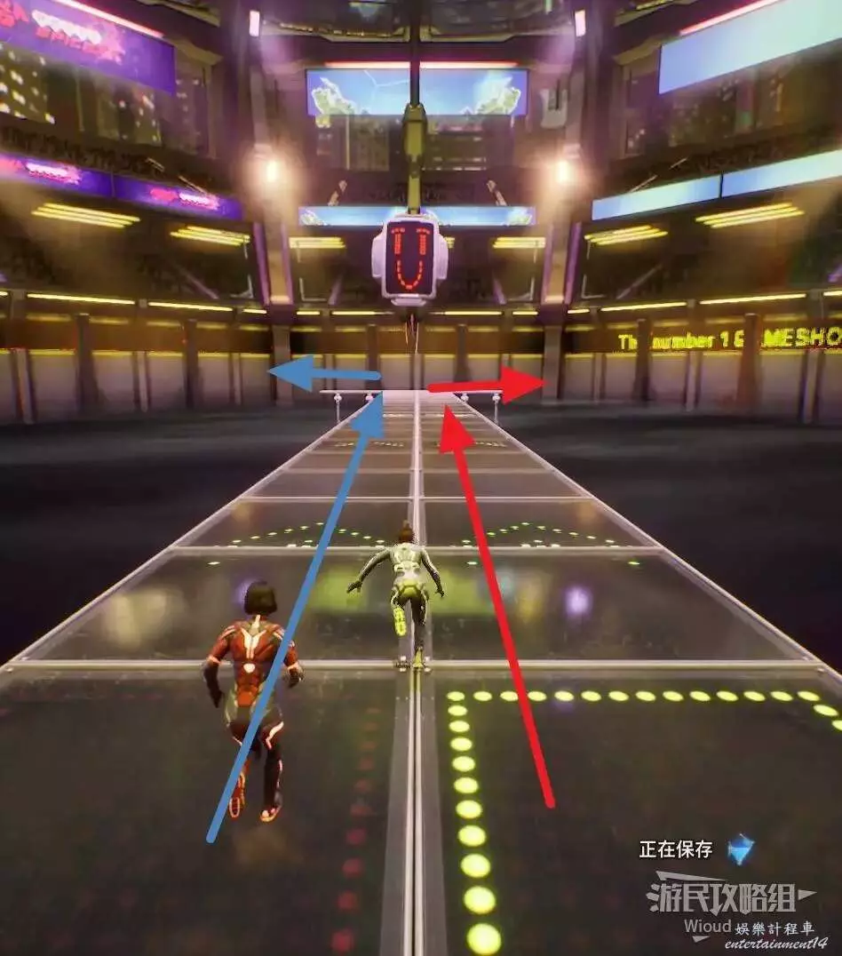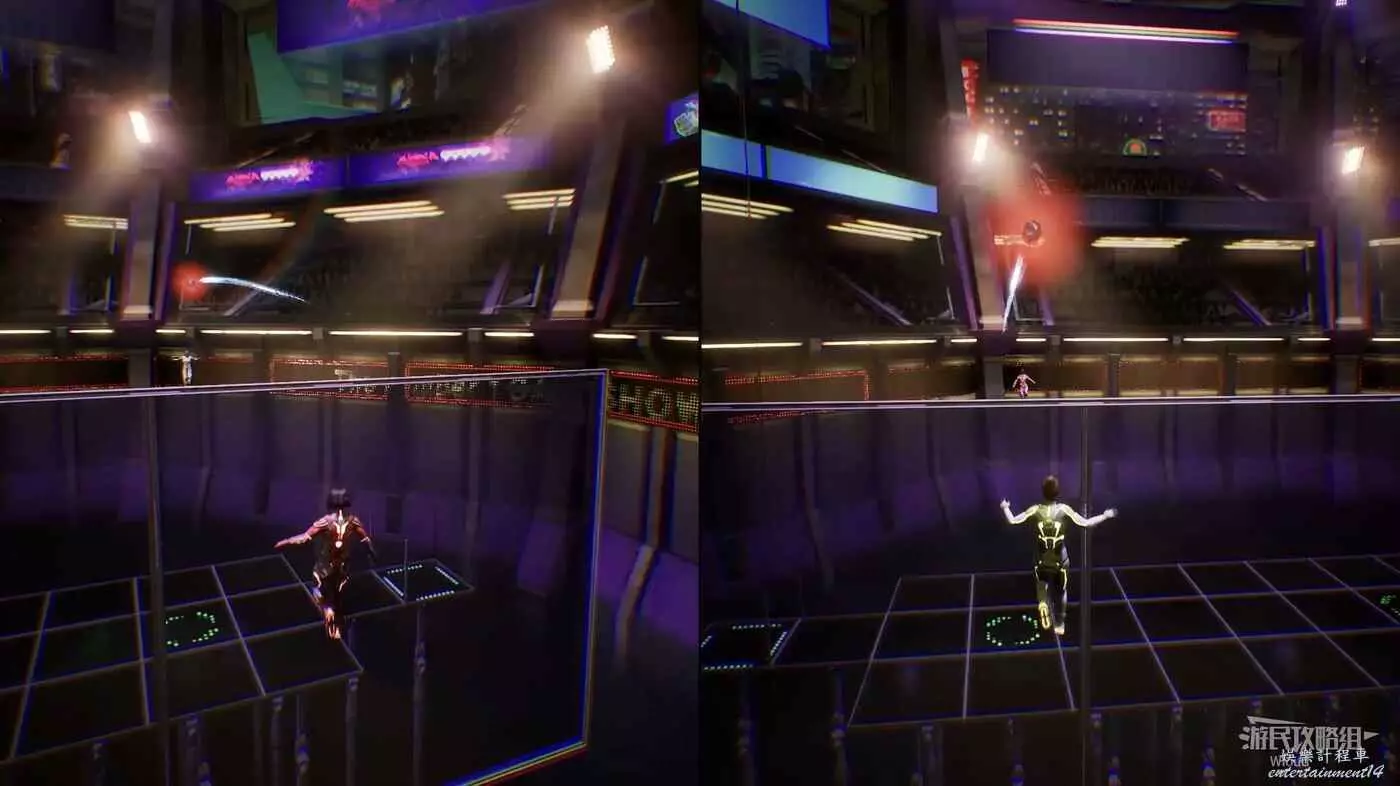 此支線為關卡推進式,關卡1很簡單,兩個玩家先跑到盡頭再分別往左右跑。