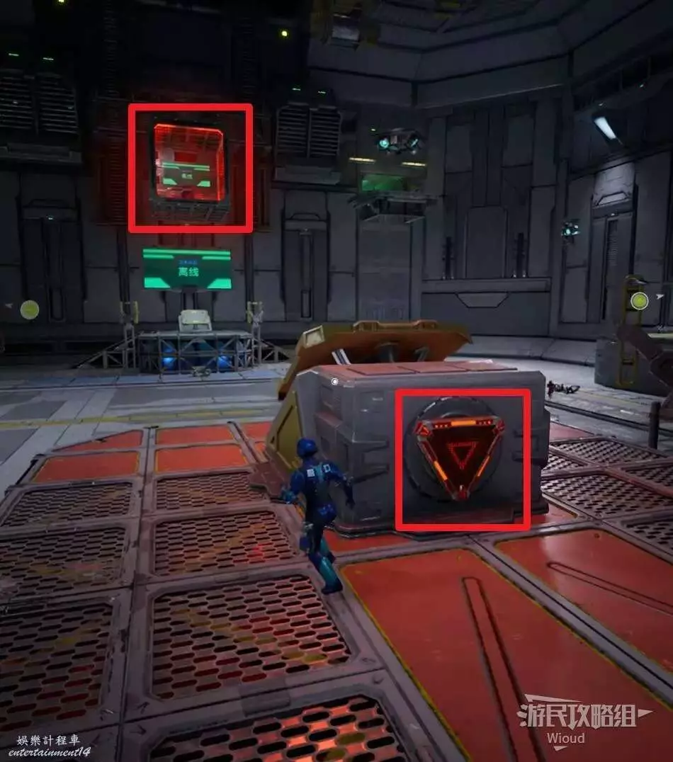 當敵人殘血後,追著跑動一個液壓機的位置,朝液壓機上的顏色標誌射擊,將敵人徹底消滅。