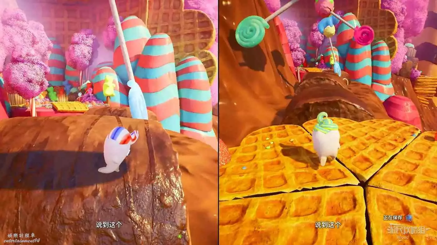 小心中間的餅乾圓盤,餅乾會隨著玩家踩踏而脫落。