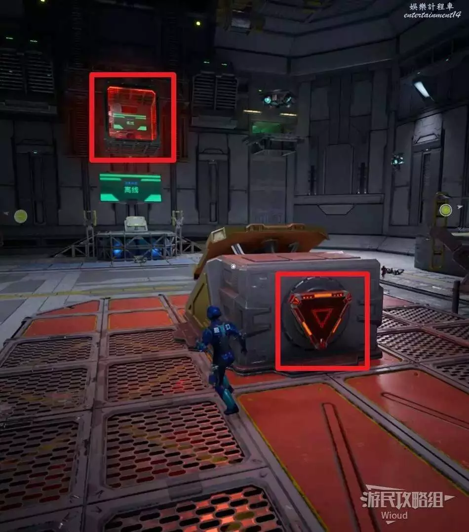 雙影奇境 (Split Fiction) 第四章啟動月台解謎攻略 11 3 月 2025-03-11 廣告 作者:Wioud 來源:遊民星空 繼續沿路走到一個大廳,此處有兩個離線的月台,這裡以紅色月台演示。 先讓藍玩家站到紅色月台的彈簧機關處,然後紅玩家先朝對面高處的紅色鐳射處扔一個爆破器,再射擊機關的紅色標誌讓藍色玩家往對面高處平台跳。 即將到達時看準時機啟動爆破器讓藍玩家跳進去,站在藍色板塊上射擊裡面的藍色標誌啟動螢幕,繼續在另一個平台重複此步驟。