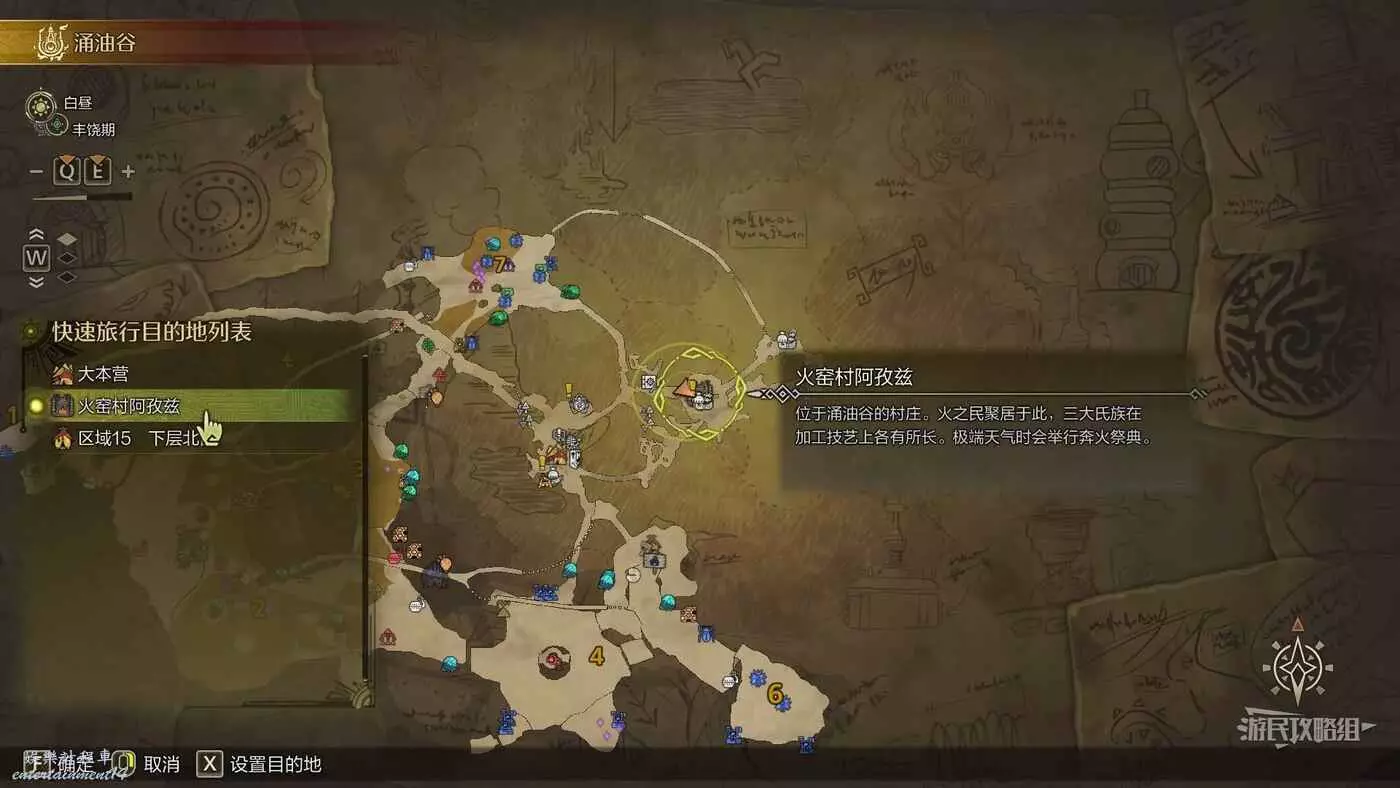 女王花的蠱惑粉會在緋紅森林隨機出現在6個固定點位,具體位置請參考下圖。在豐饒期出現的幾率更大,建議在營地休息將環境更改為豐饒期,或者通過進行豐饒期的自由任務來獲取。由於它的刷新是隨機的,有可能在6個固定點位其中的5個裡都能找到,也有可能1個點位也不刷新,建議通過地圖左下角圖示篩選來查看出現的位置和數量。