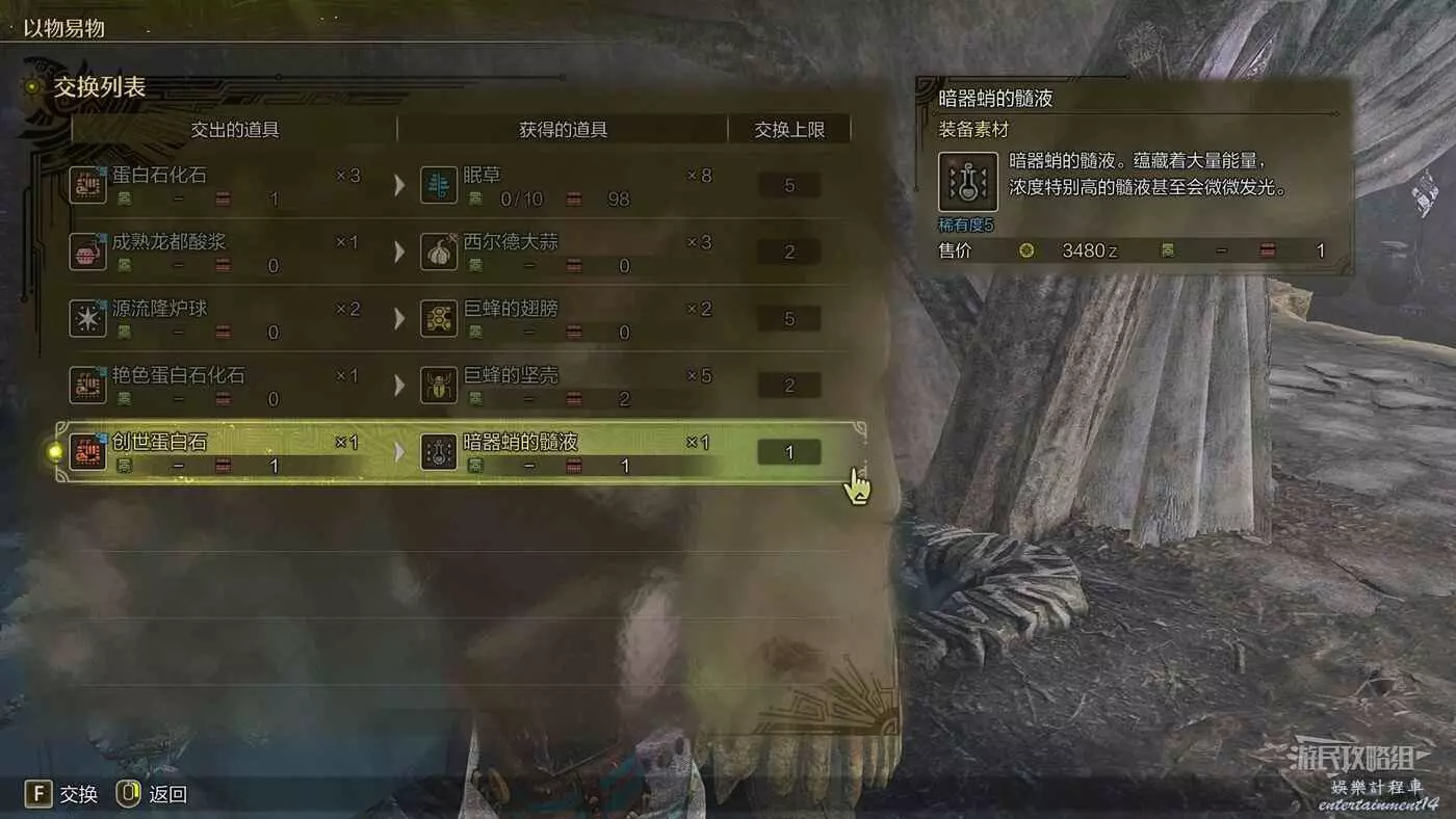 在緋紅森林的【巨大琥珀】出現事件期間可以獲得,通過【環境概要】可以查看發生的具體地點,設置目的地後騎乘鷺鷹龍自動尋路並前往即可。