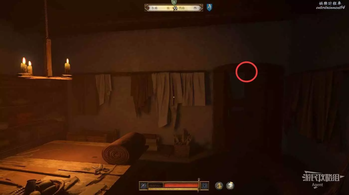 天國降臨 救贖 2 驅邪避災支線攻略 11 3 月 2025-03-11 廣告 作者:Agent 來源:遊民星空 支線-驅邪避災 查理皇帝旅館二樓房間裡,找到約翰·帕勒。 晚上再去偷可避免被發現。 地圖上標著A的房子,走樓梯上樓,然後爬梯子到頂樓,桌上拿到釘子。 進裁縫店隔壁的門,進門後左拐進屋,看門框上有個馬蹄鐵。 市政廳對面的絞索旅館,下到地下室右拐,牆洞裡拿到硬幣。 三件材料都拿到後,到鐵匠鋪打造鎮宅斧,交給約翰·帕勒。