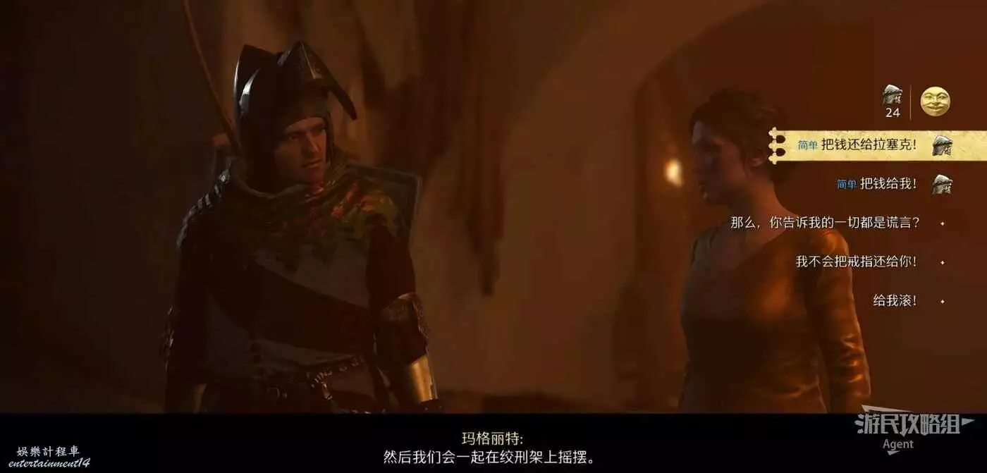 找旅館老闆打聽後,在旅館外找到正在乞討的瑪格麗特,發現她就是之前在磨坊騙了你的人。選擇幫她去坑人,不要給她錢!