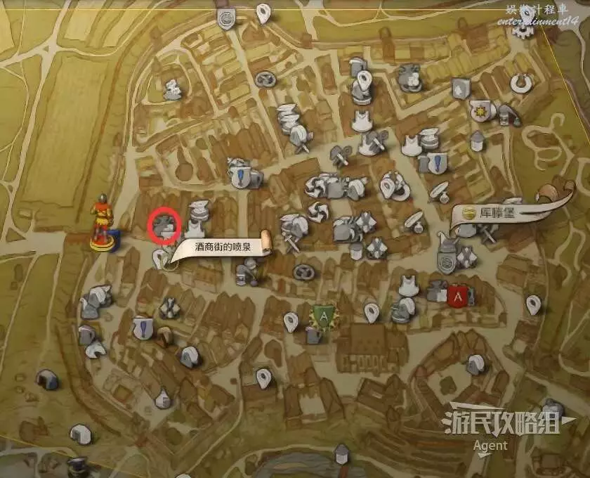 澡堂在西城門南面,東城門附近有個槍匠。