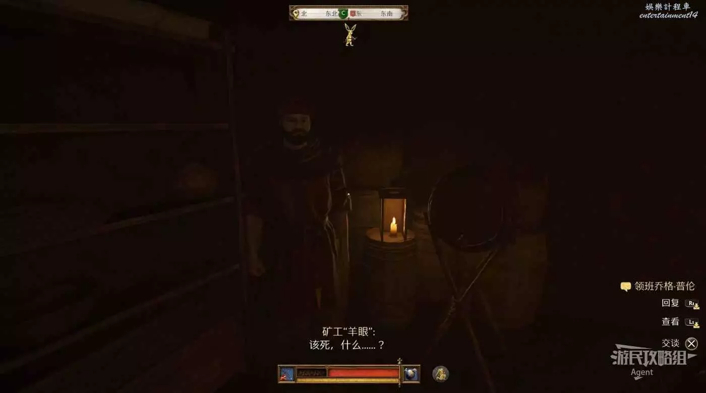 從隧道裡撬鎖開門來到聖徒酒館的地下,進門後左拐見到領班喬格·普倫。
