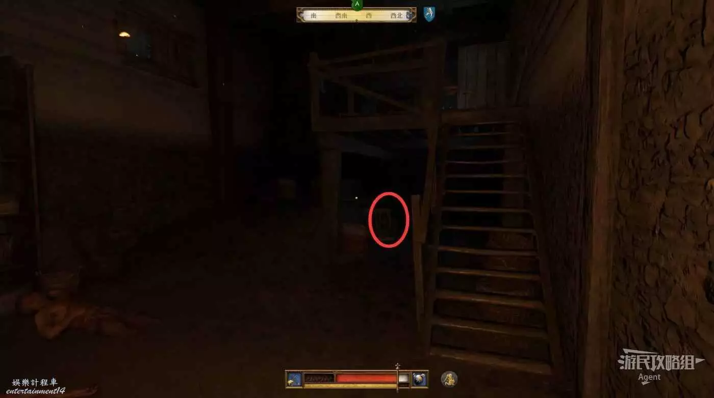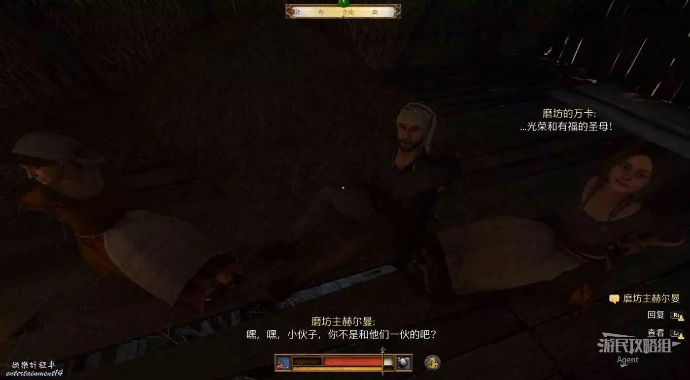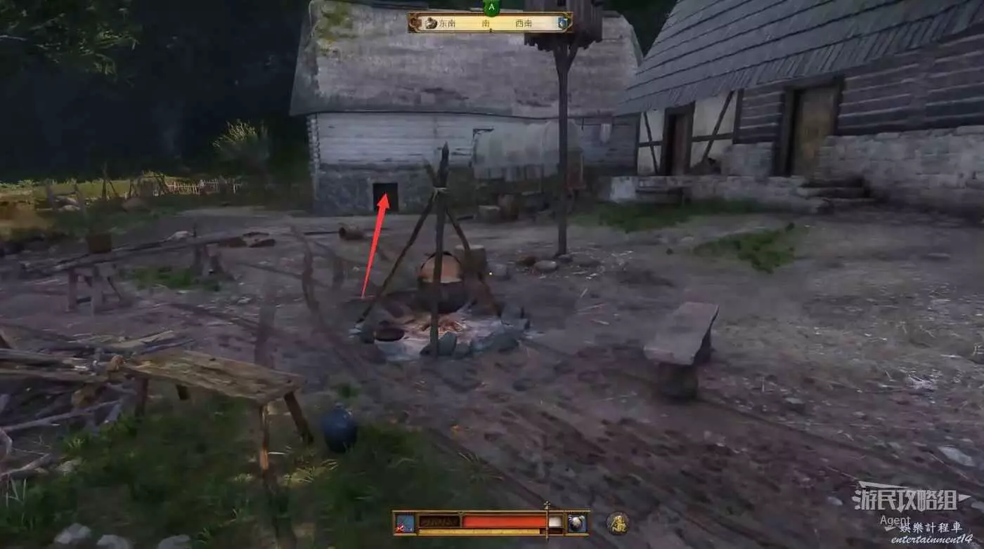來到德內馬克,這裡已經被強盜佔領,小心不要被發現。注意這個房子,磨坊主一家人就被關在這個房子樓上。