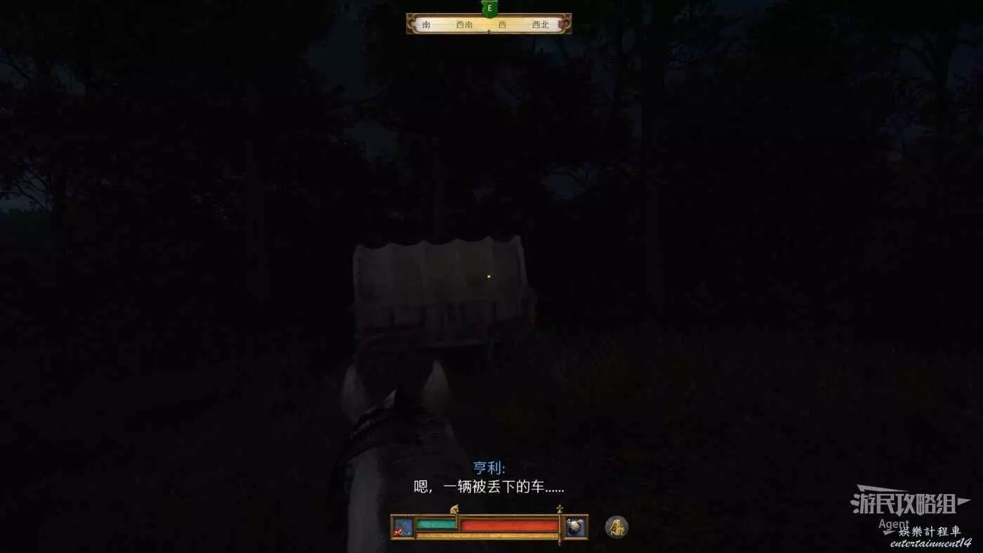跟隨線索往南走,發現馬車。馬車旁地上有血跡,血跡旁可以撿到馬項圈。