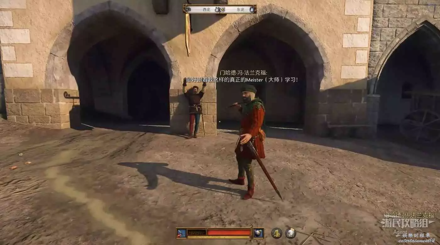 在庫騰堡市政廳北面,和劍術大師門哈德決鬥,需先脫掉盔甲才能和他決鬥。