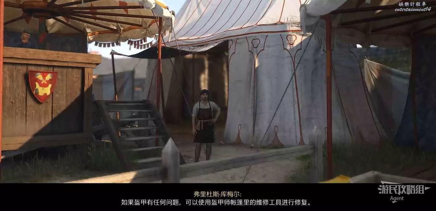 兩場決鬥之間,如果武器裝備壞了或者受傷了,可以找比武場兩側的軍械師和女僕修復。