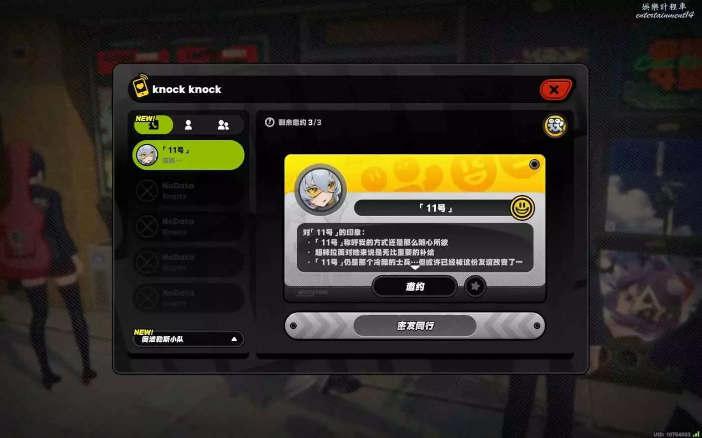 1.想要體驗11號的言行。心願事件有語音和字幕,逸趣事件無語音有字幕。