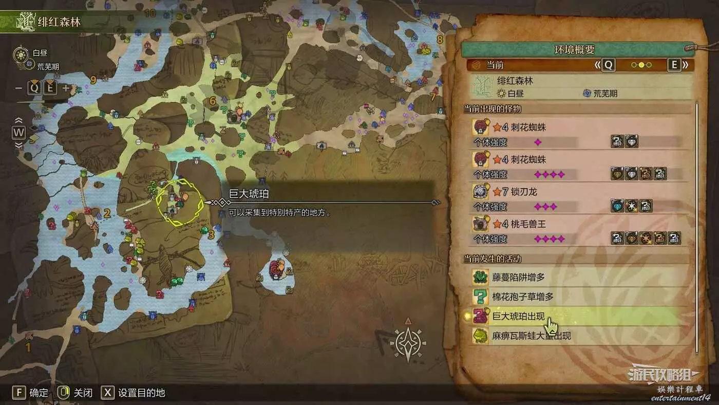 在緋紅森林的【巨大琥珀】出現事件期間可以獲得,通過【環境概要】可以查看發生的具體地點,設置目的地後騎乘鷺鷹龍自動尋路並前往即可。