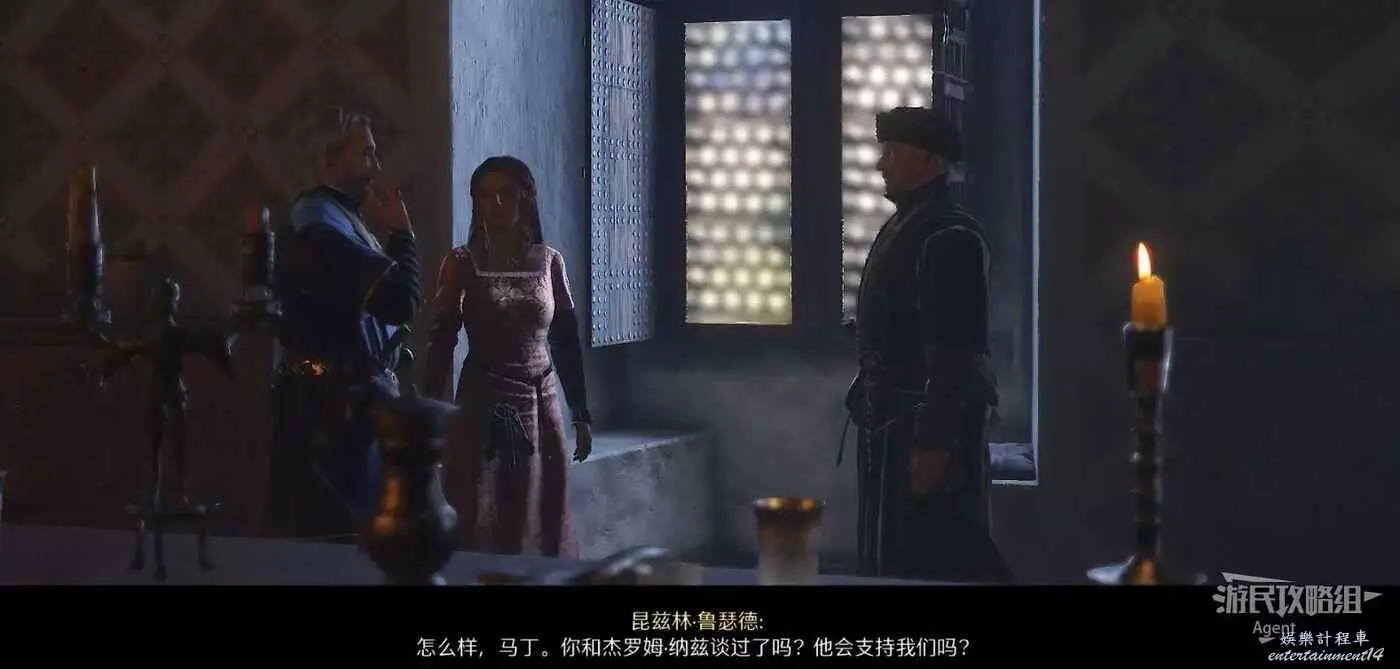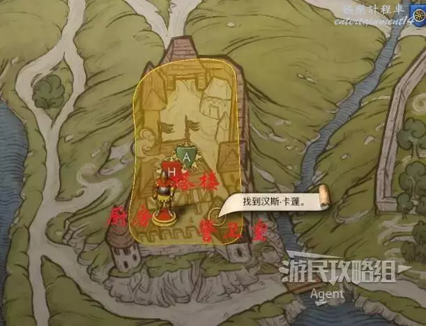 劇情後,偷聽正在開會的守衛們,了解到關鍵資訊:有個人被派去警衛室休息、鑰匙在廚娘德侯米婭那。