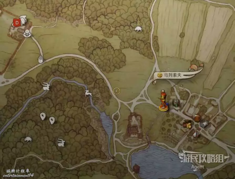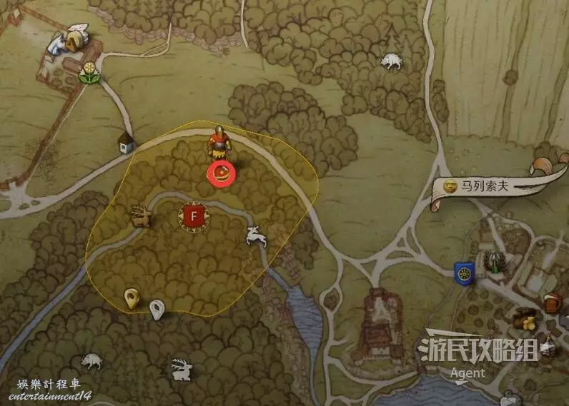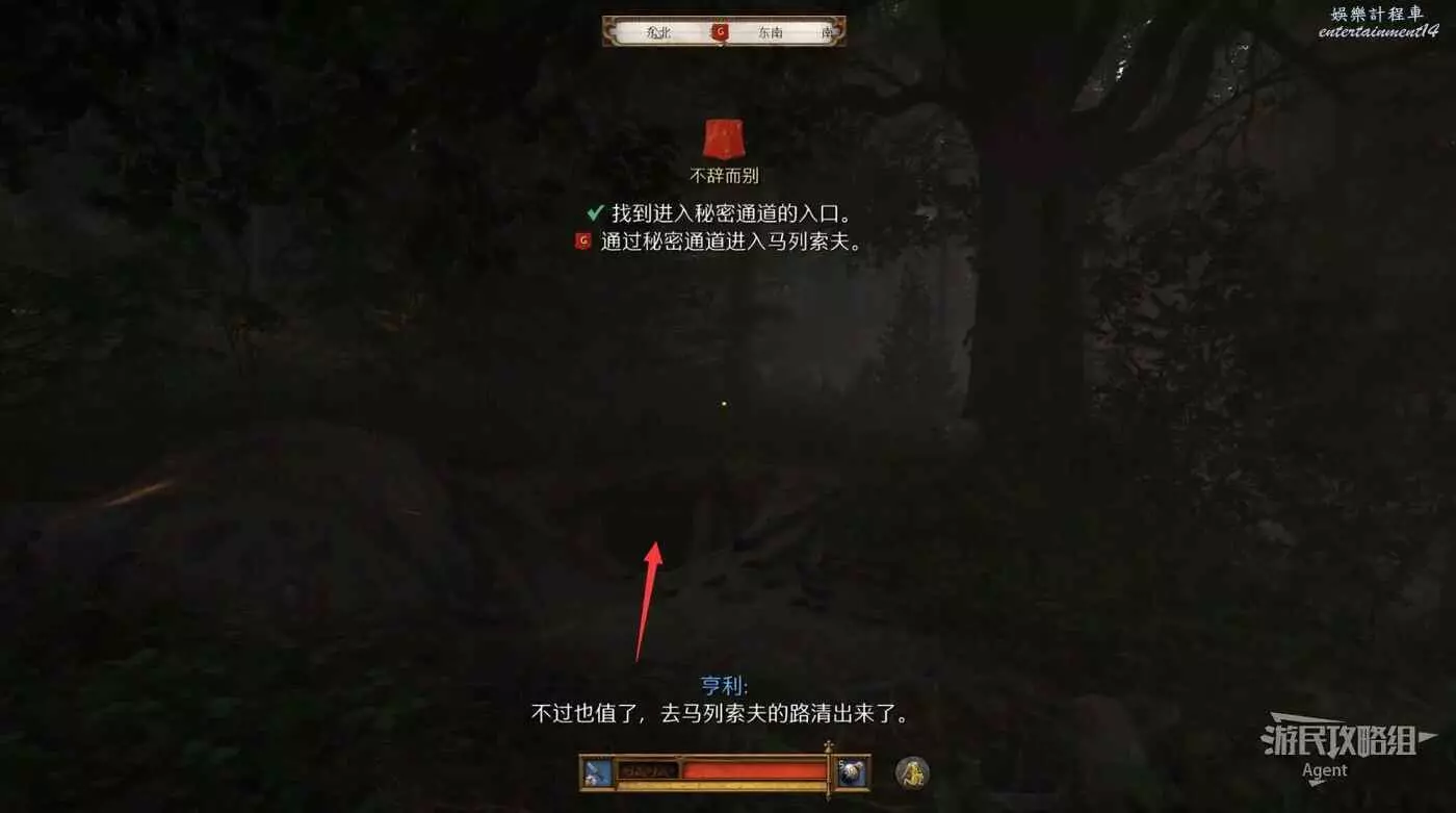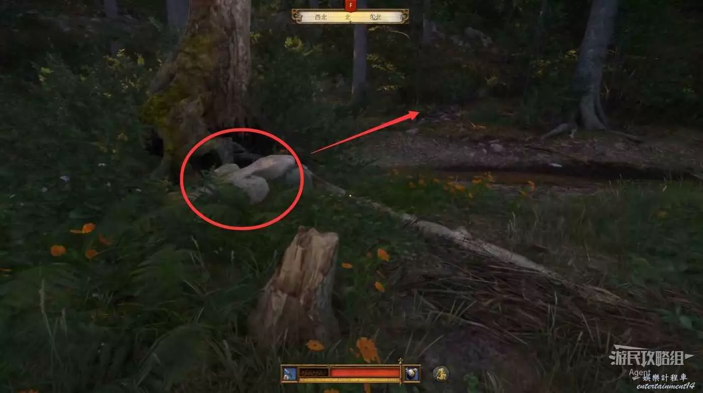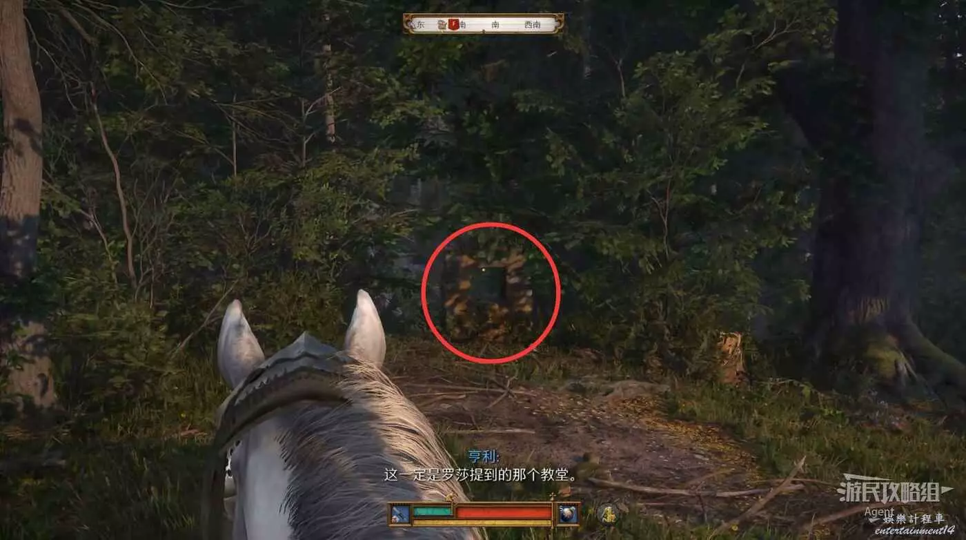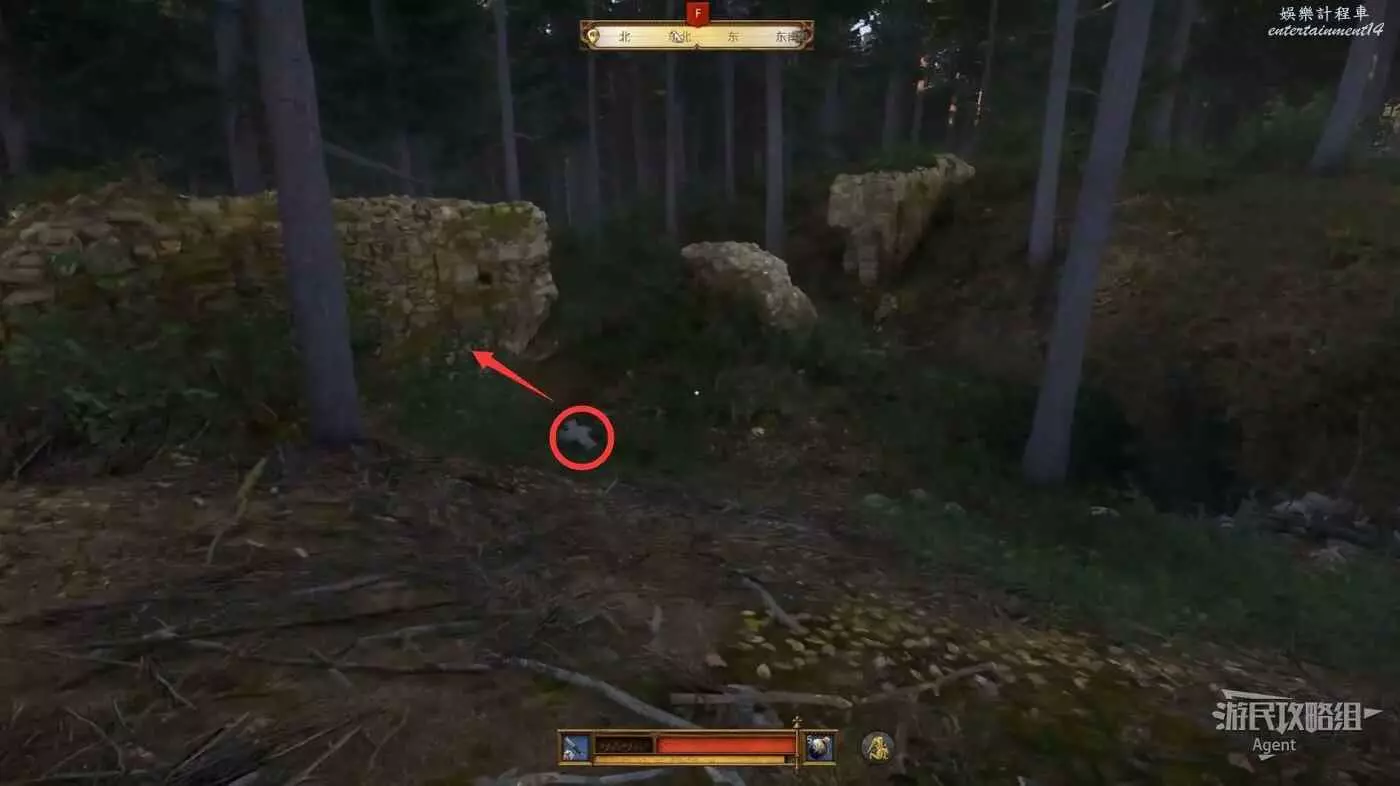 在下圖位置的廢墟旁,發現躺著的十字架,跟隨十字架所指的方向走。
