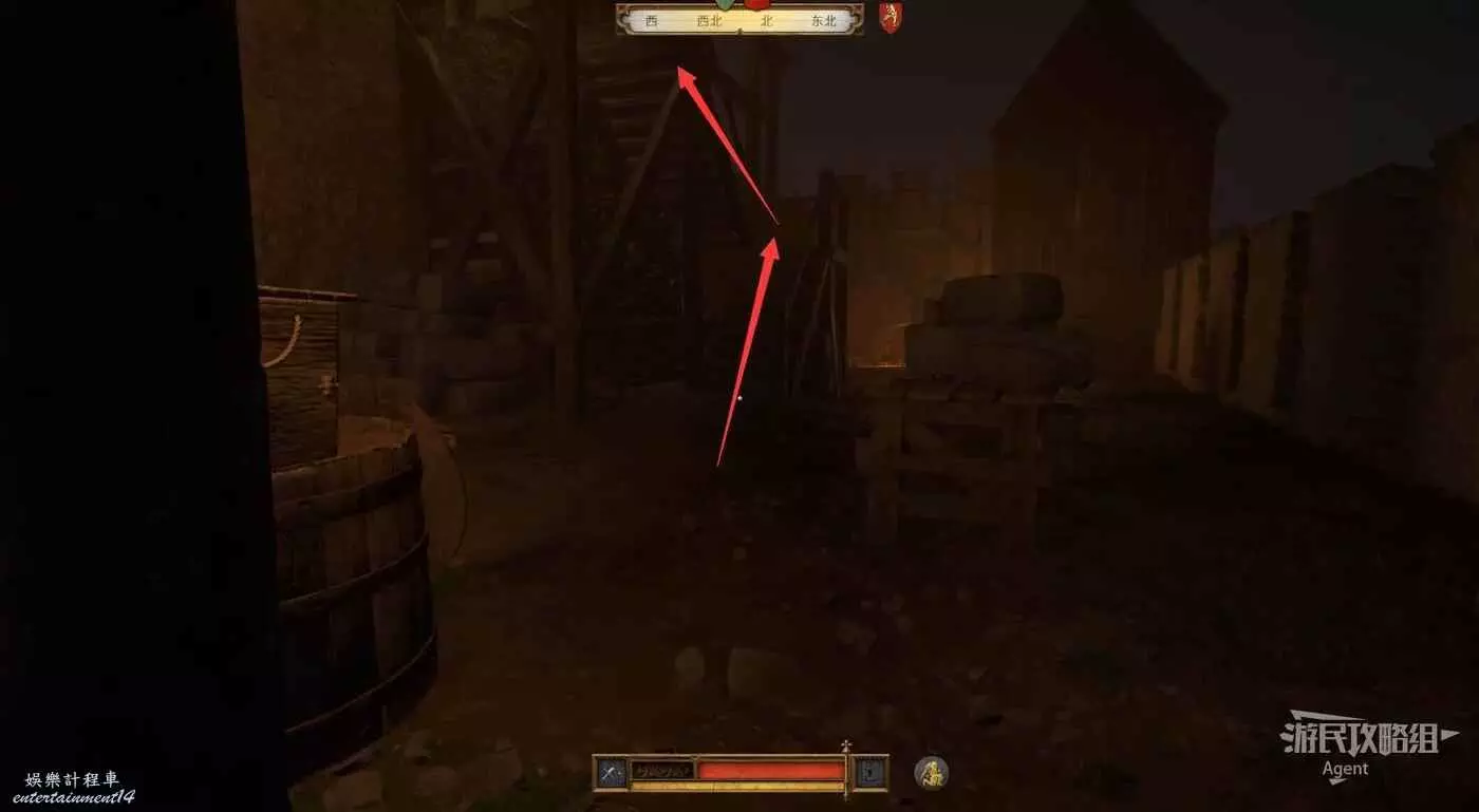 等巡邏的守衛走到帳篷後面再暗殺,然後過去暗殺城門上的守衛。