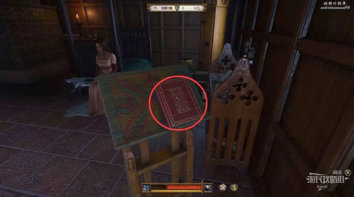 等他們到二樓吃飯後,到三樓恐嚇奧菲利亞夫人,左邊台子上拿到塔樓鑰匙,右邊窗戶邊拿到羅莎的紅色的書。
