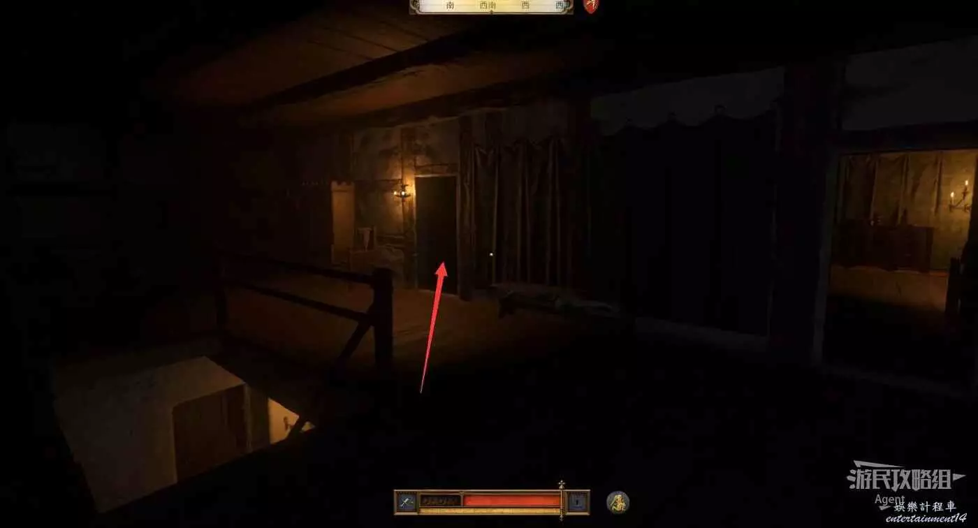 從警衛室門外的樓梯,登上塔樓,用堡壘鑰匙開門進入塔樓(二樓)。