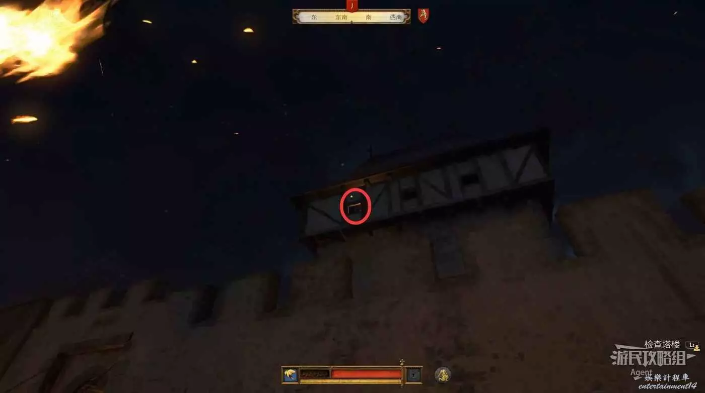 三個守衛都暗殺掉後,在馬廄舉起火把,抬頭可以看到塔樓頂部的少主用火光回應你。