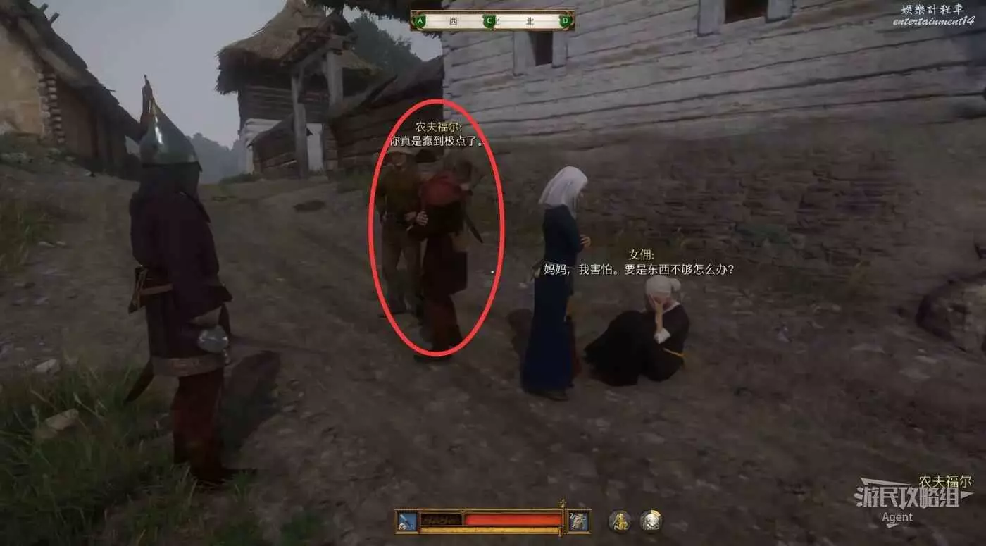 你可以行俠仗義,幫村民幹掉侵略者。或者拿出自己背包裡的食物和錢,替村民上交。