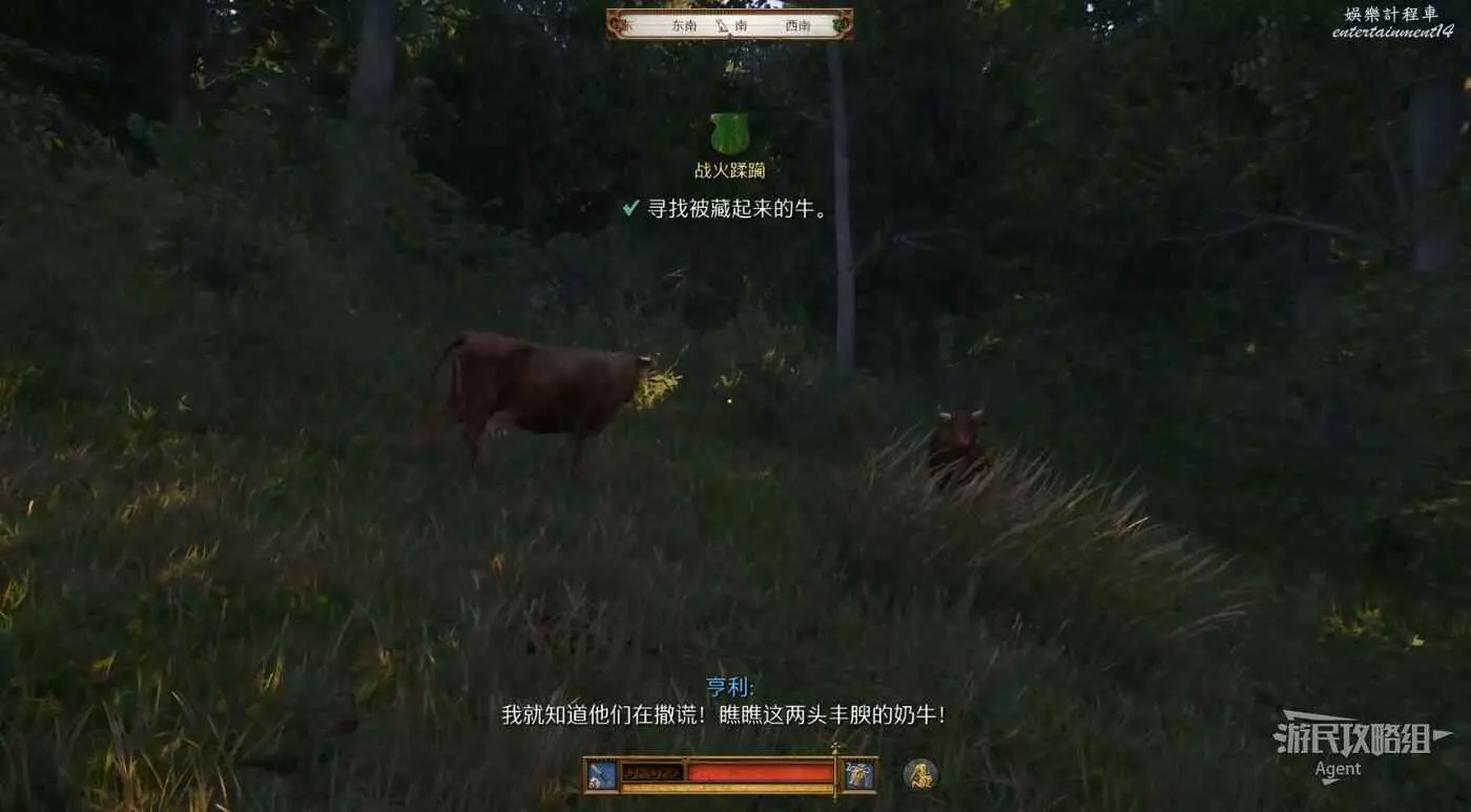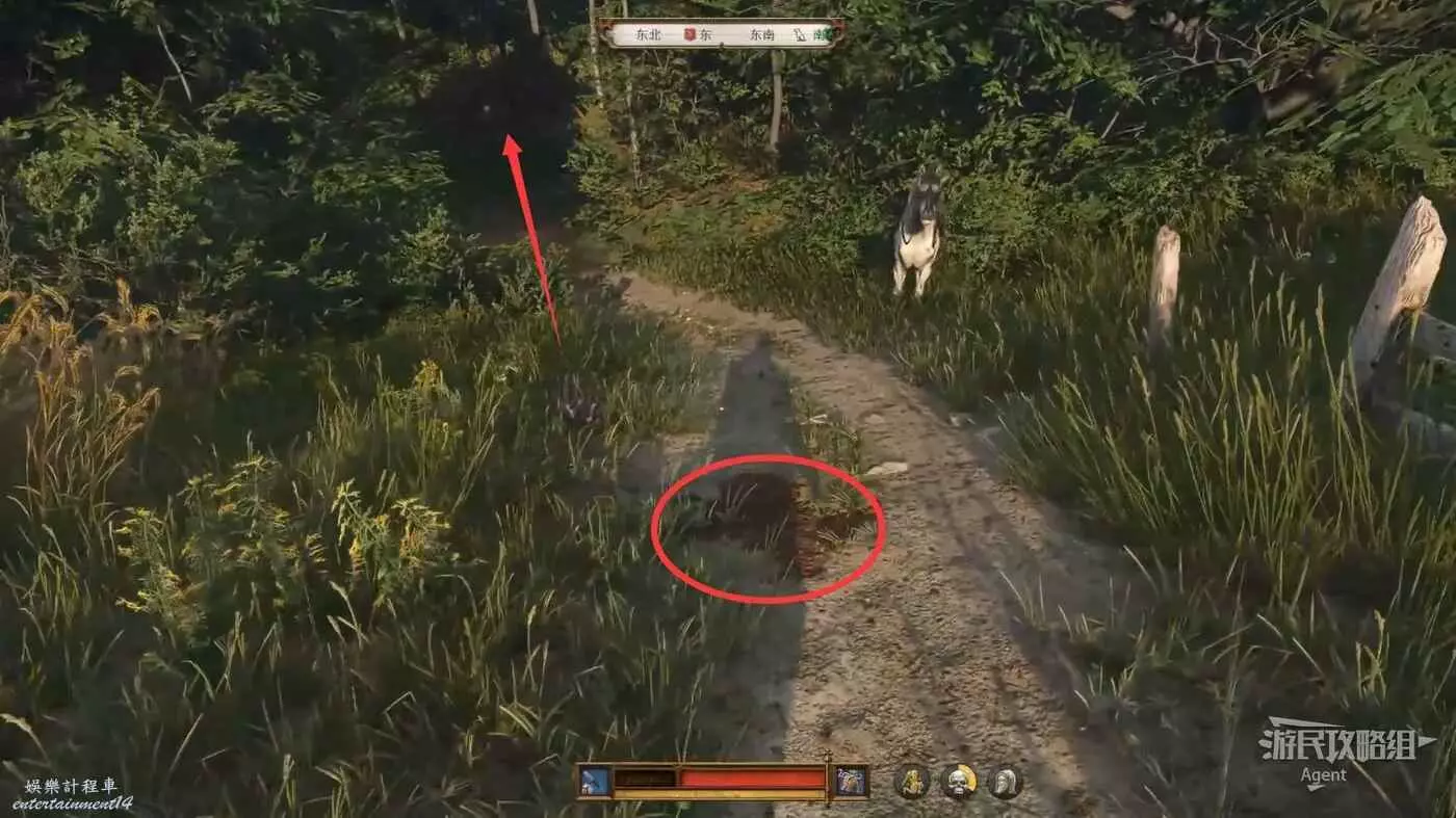 過河後沿路尋找牛蹄印,最終在下圖位置找到被藏起來的奶牛。