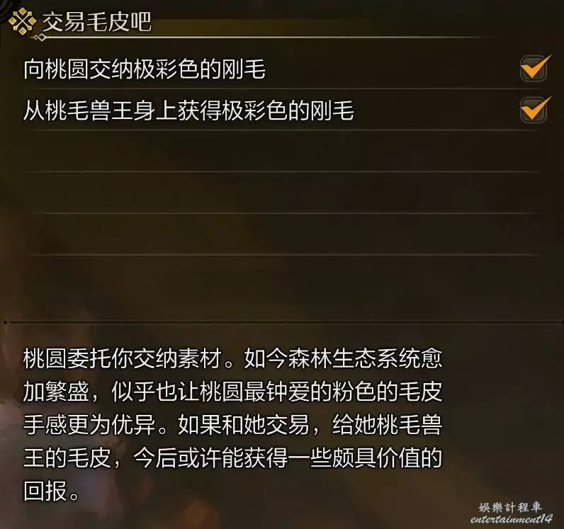 在森狸人之家接到桃圓的交易毛皮吧任務。