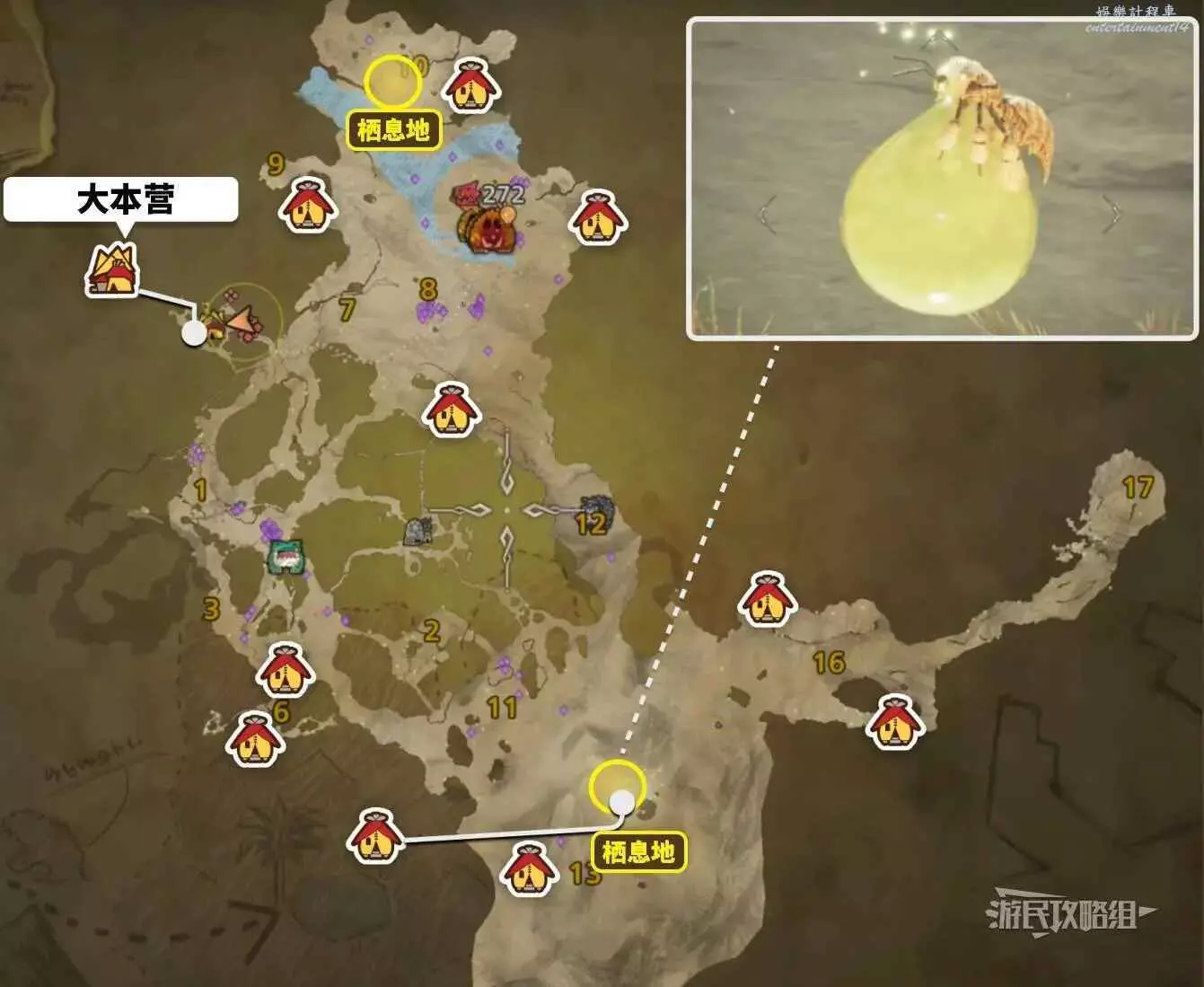 位於天塹沙原區域10、區域13;緋紅森林區域8;龍都遺跡區域2、區域5、區域13,所有大恢復蜜蟲都只會在豐饒期出現