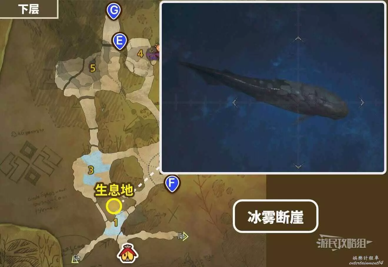 推薦前往冰霧斷崖區域1的釣魚點,在豐饒期釣。其他地圖出沒釣點請參考下文。