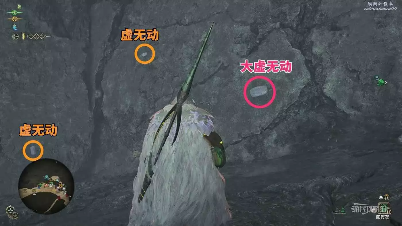 大虛無動會貼在岩壁上,角色靠近時它不會逃跑,可以用捕獲網捕捉。